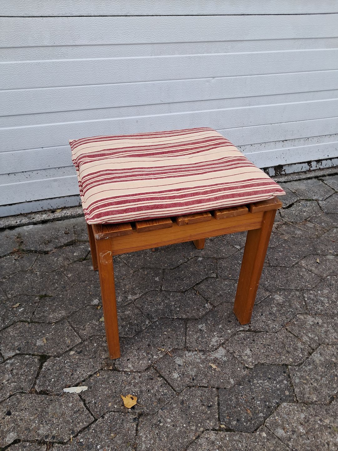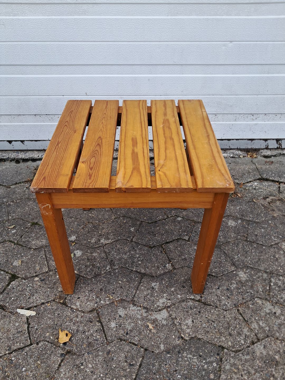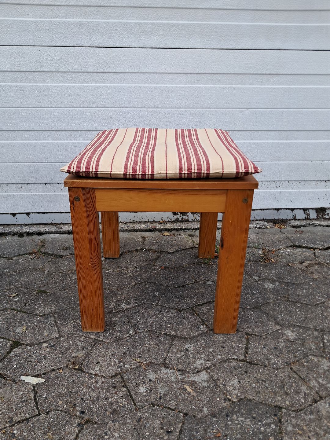 Skammel i massivt fyrretræ, fra 1980erne.Den har brugsspor.
