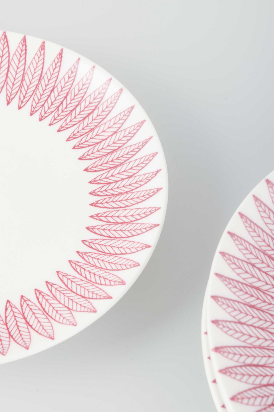 Stig Lindberg for GustavsbergSeks kagetallerkener ‘Salix’, midten af 1900-tallet.