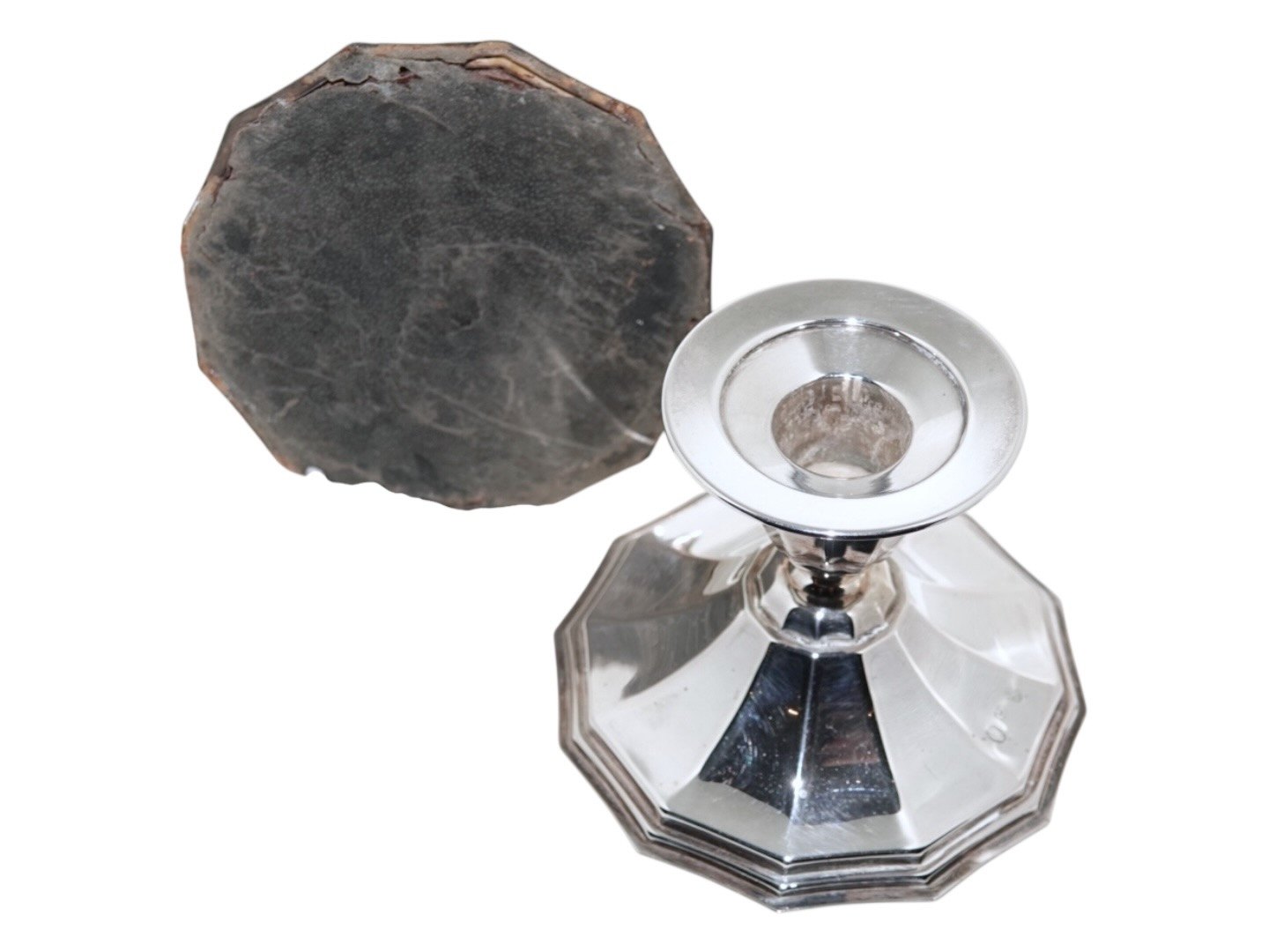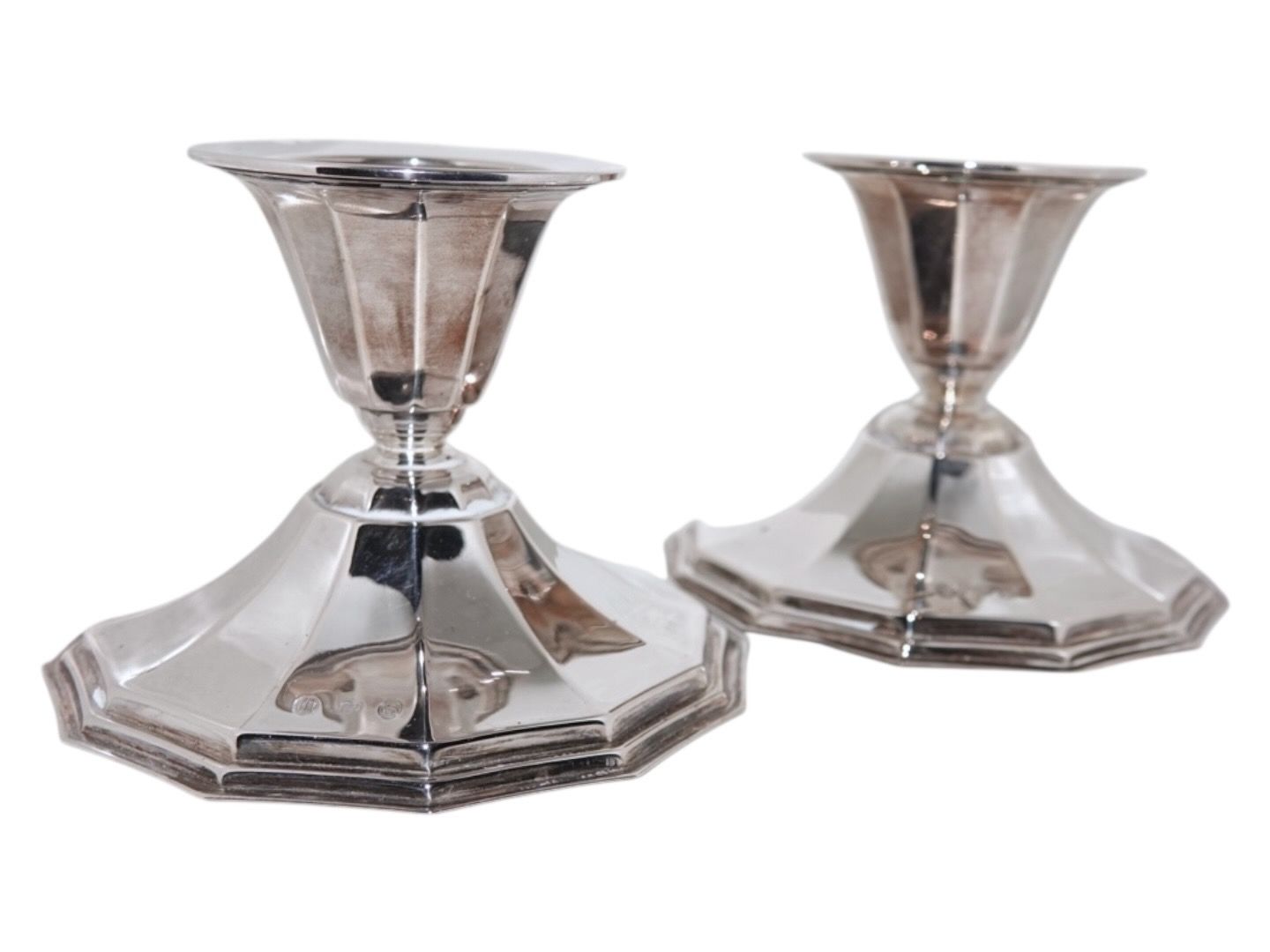 Cohr sølv, par moderne, kantede lysetager fra 1944.Stemplet med Tre Tårne, Cohr mestermærke og årstal 44. - Cohr var sølvsmed i Fredericia.