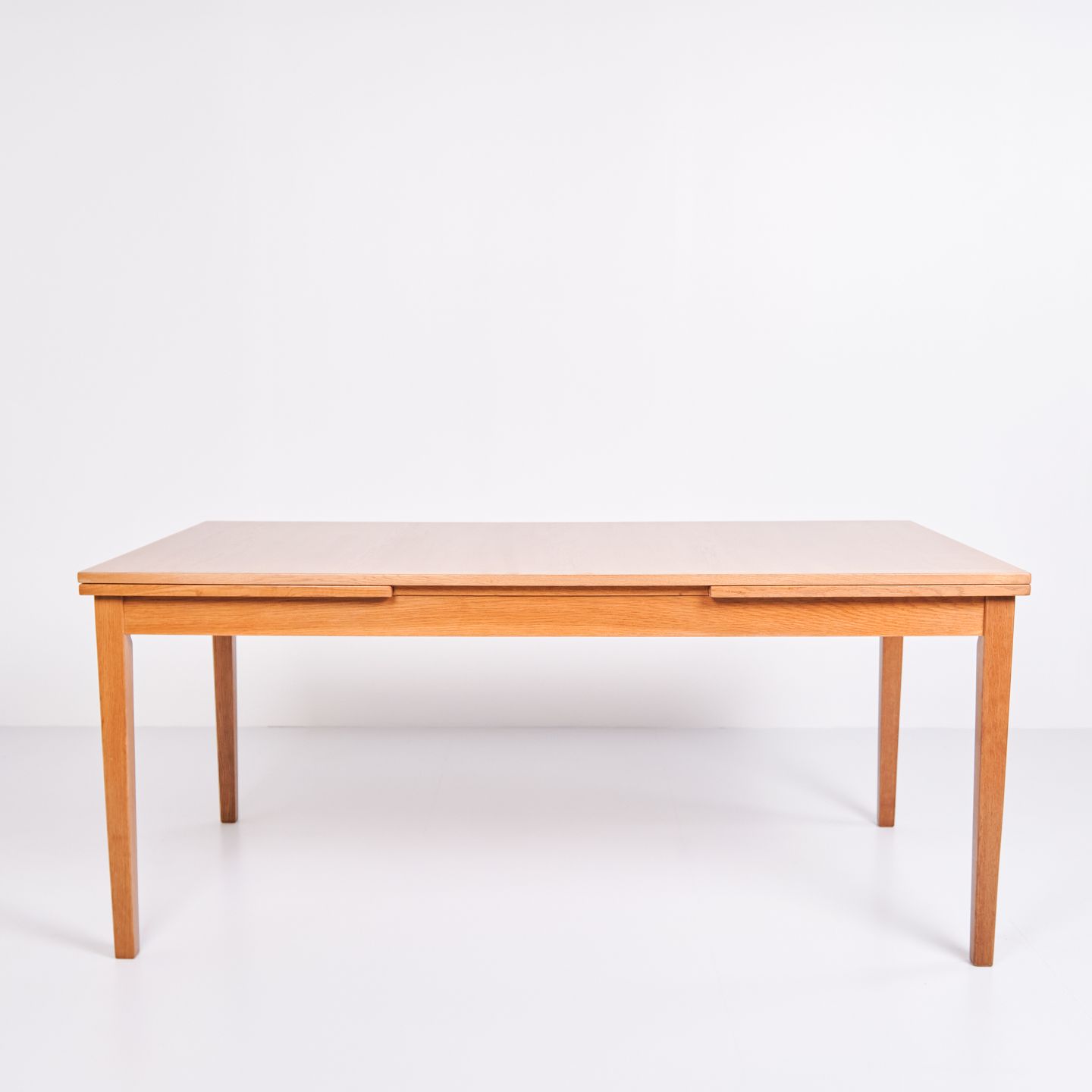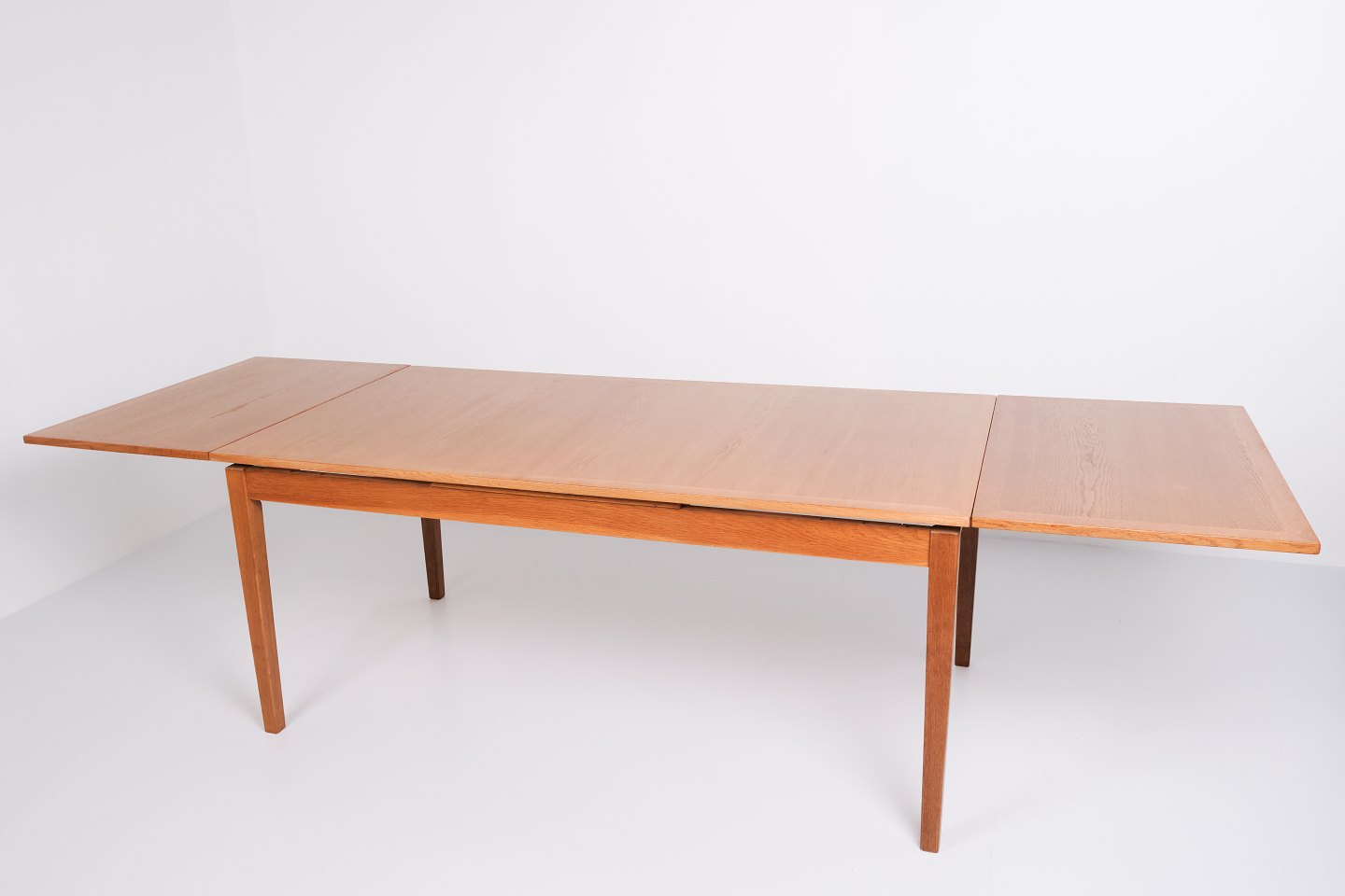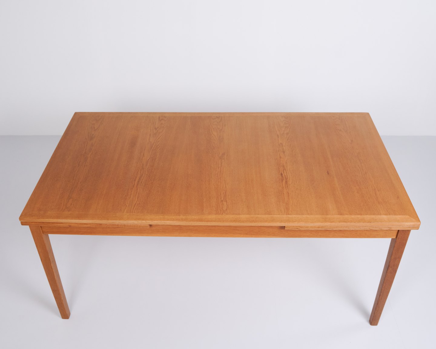 Kai Winding Eichen-Esstisch aus den 1960er Jahren. Slagelse Møbelfabrik. Auszug mit zwei Platten, jeweils 55 cm.— Herkunft: Dänemark