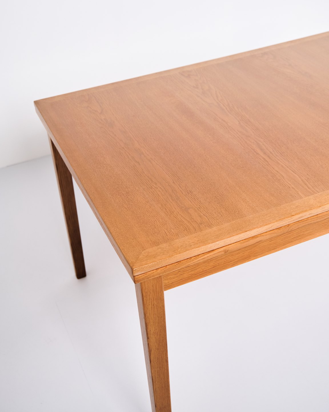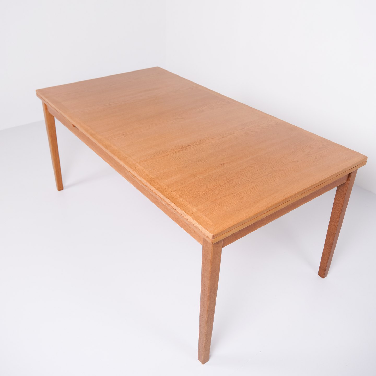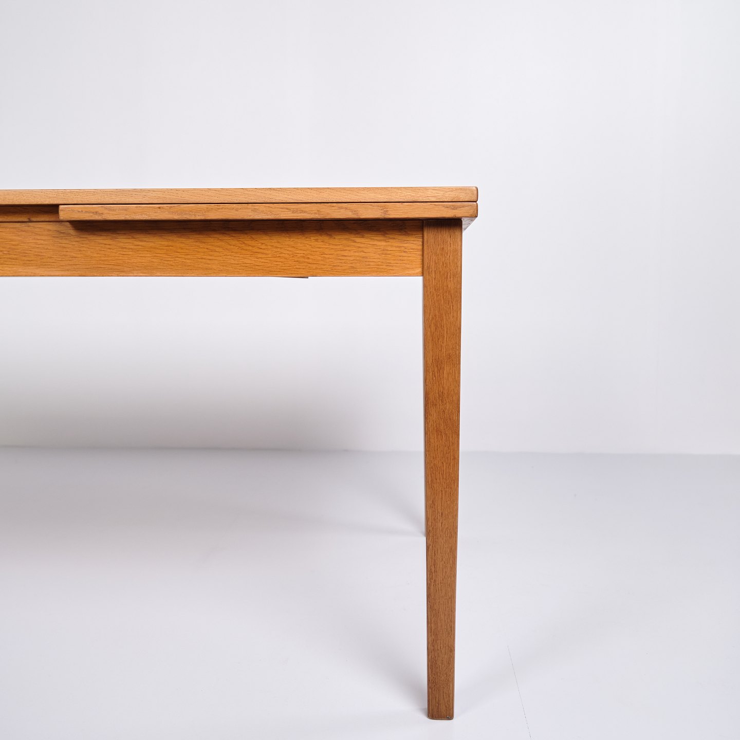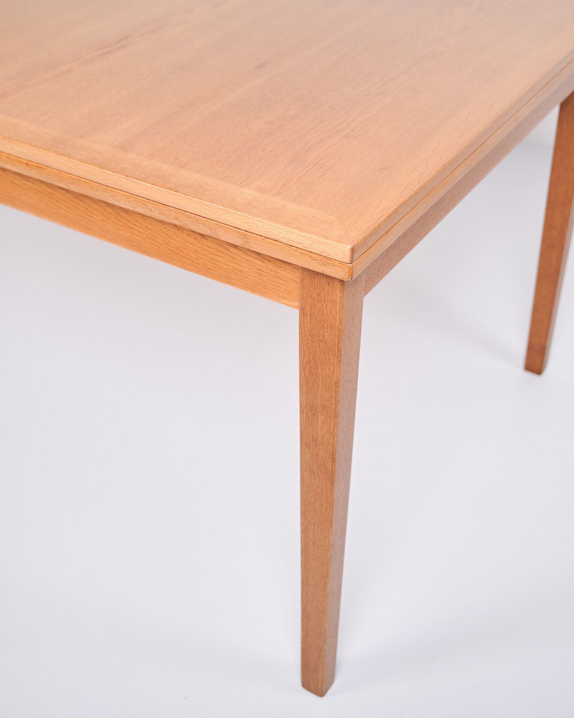 Kai Winding Eichen-Esstisch aus den 1960er Jahren. Slagelse Møbelfabrik. Auszug mit zwei Platten, jeweils 55 cm.— Herkunft: Dänemark