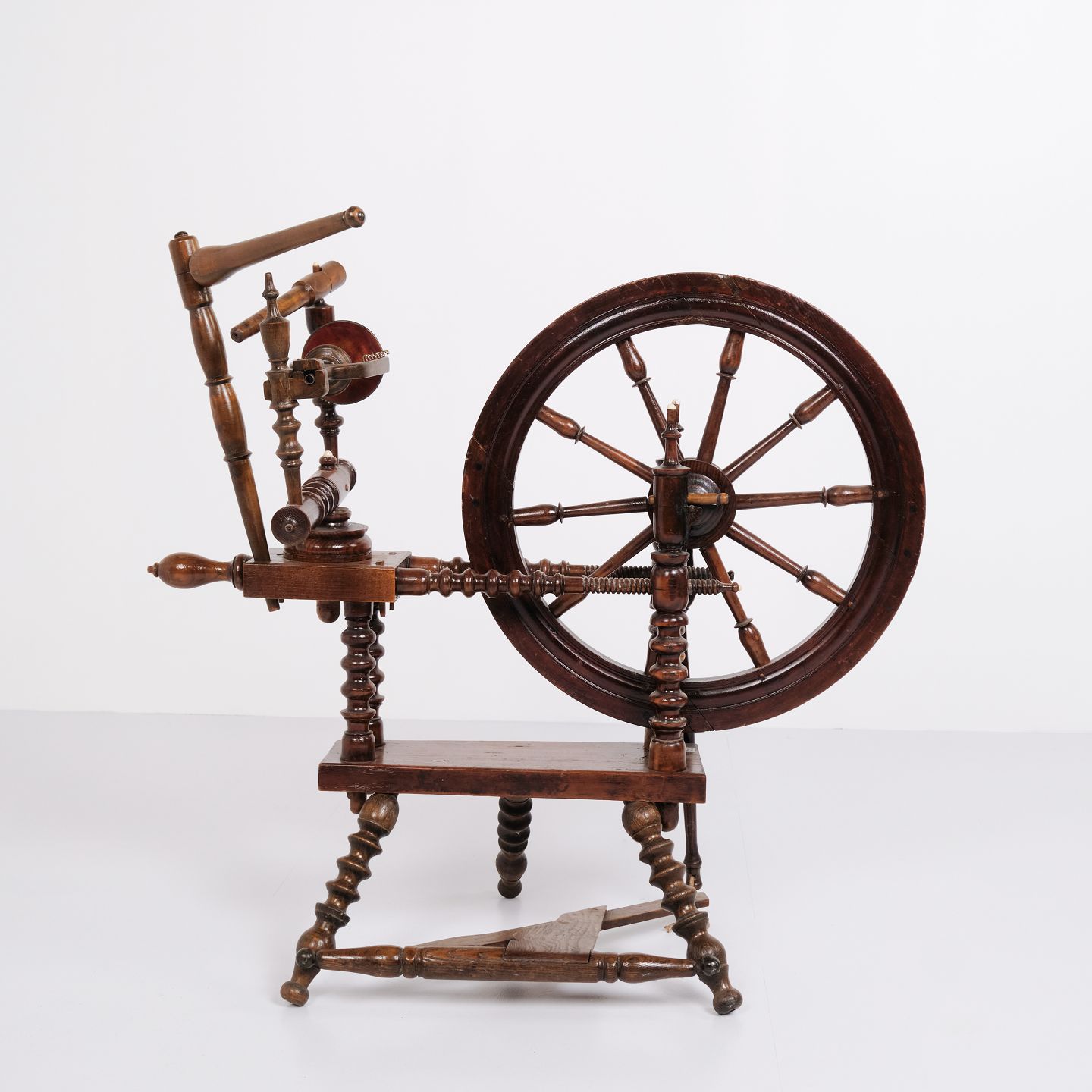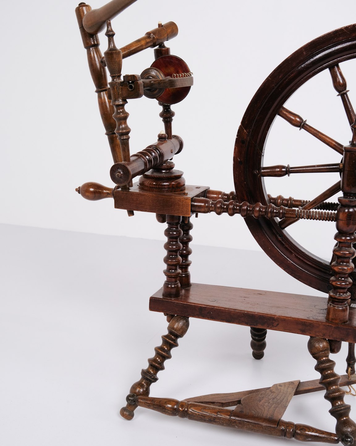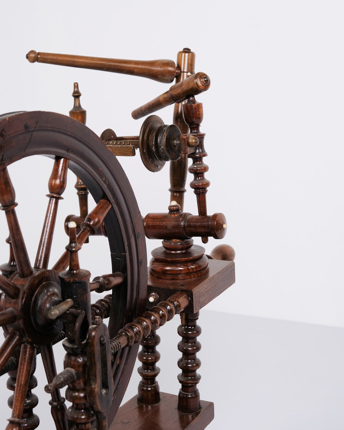Antik spinderok fra 1880’erne i håndpoleret mørkt træ.— Oprindelse: Europa