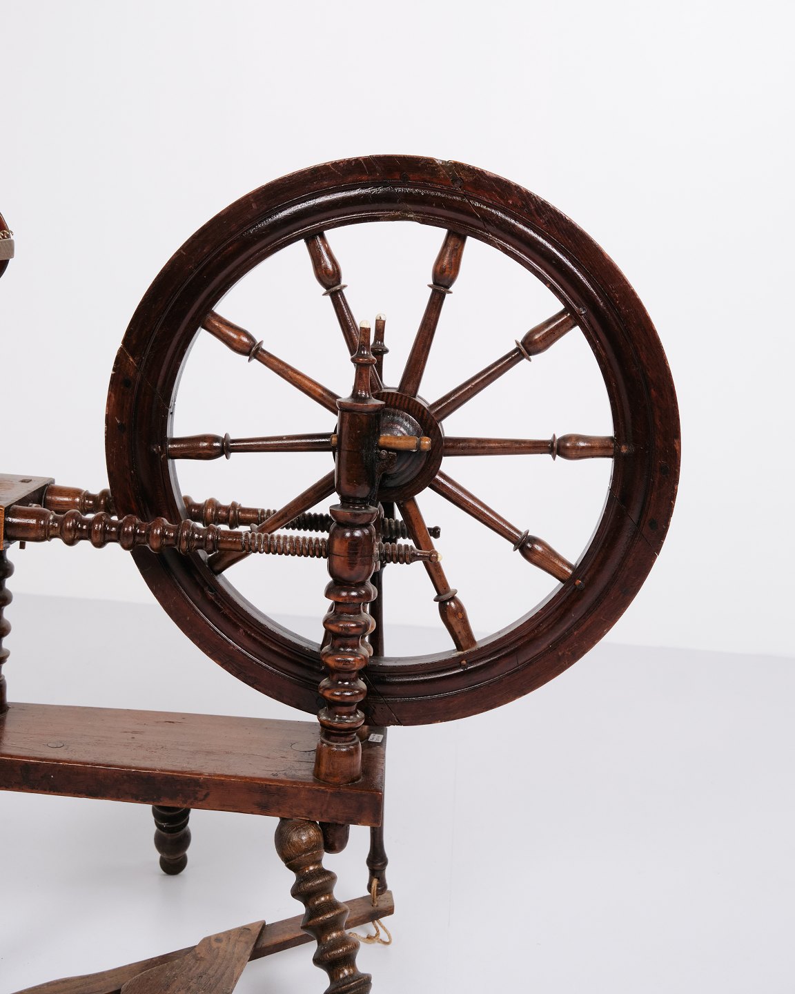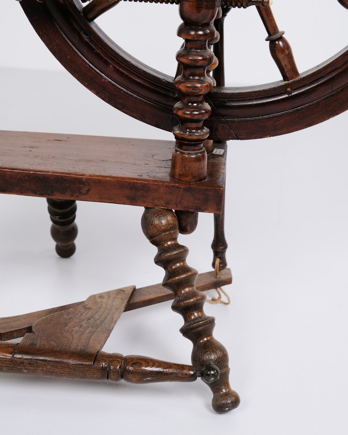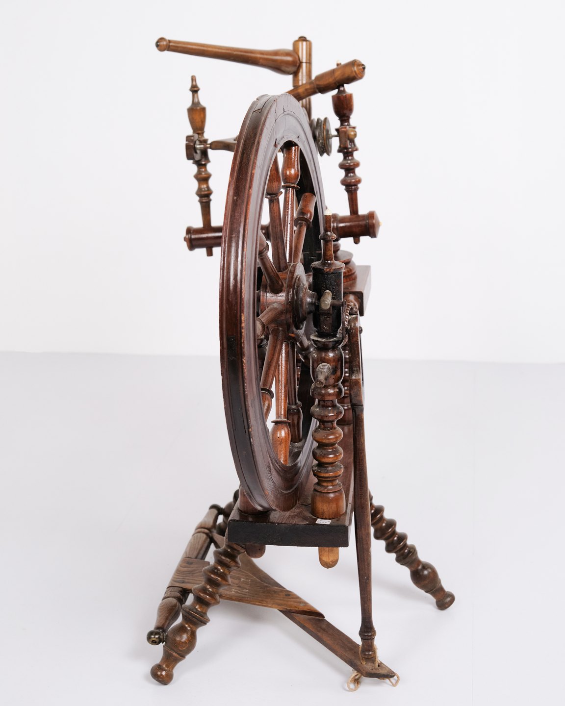 Antik spinderok fra 1880’erne i håndpoleret mørkt træ.— Oprindelse: Europa