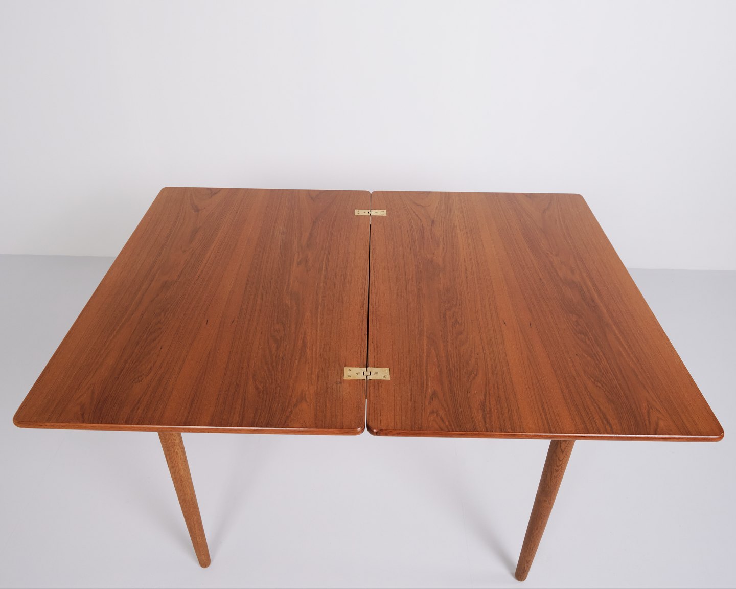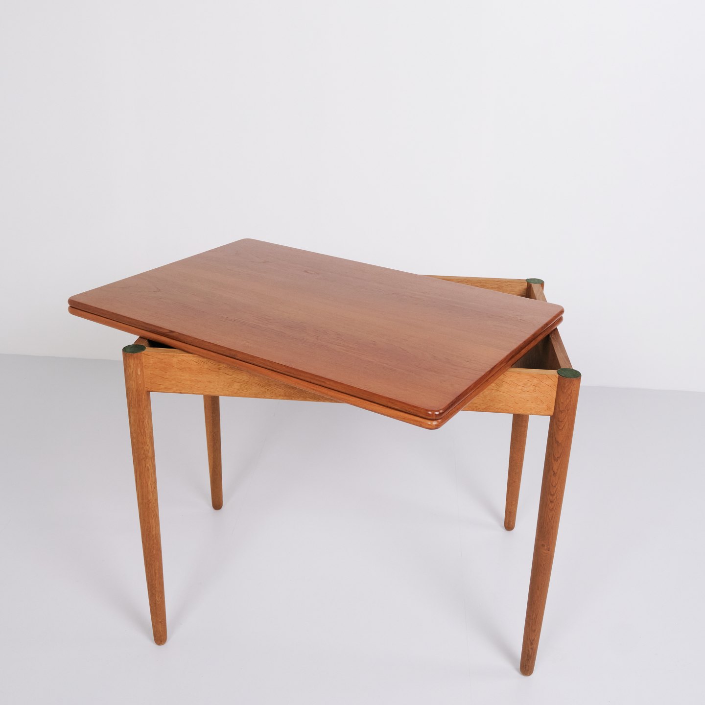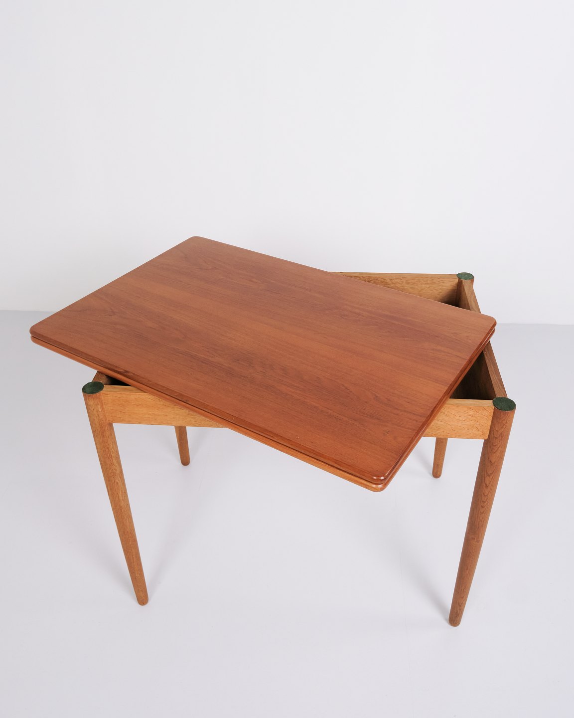Hans J. Wegner Spiel/Esstisch für Andreas Tuck. Teak und Eiche, 1960er Jahre. Eingebauter Stauraum.— Herkunft: Dänemark