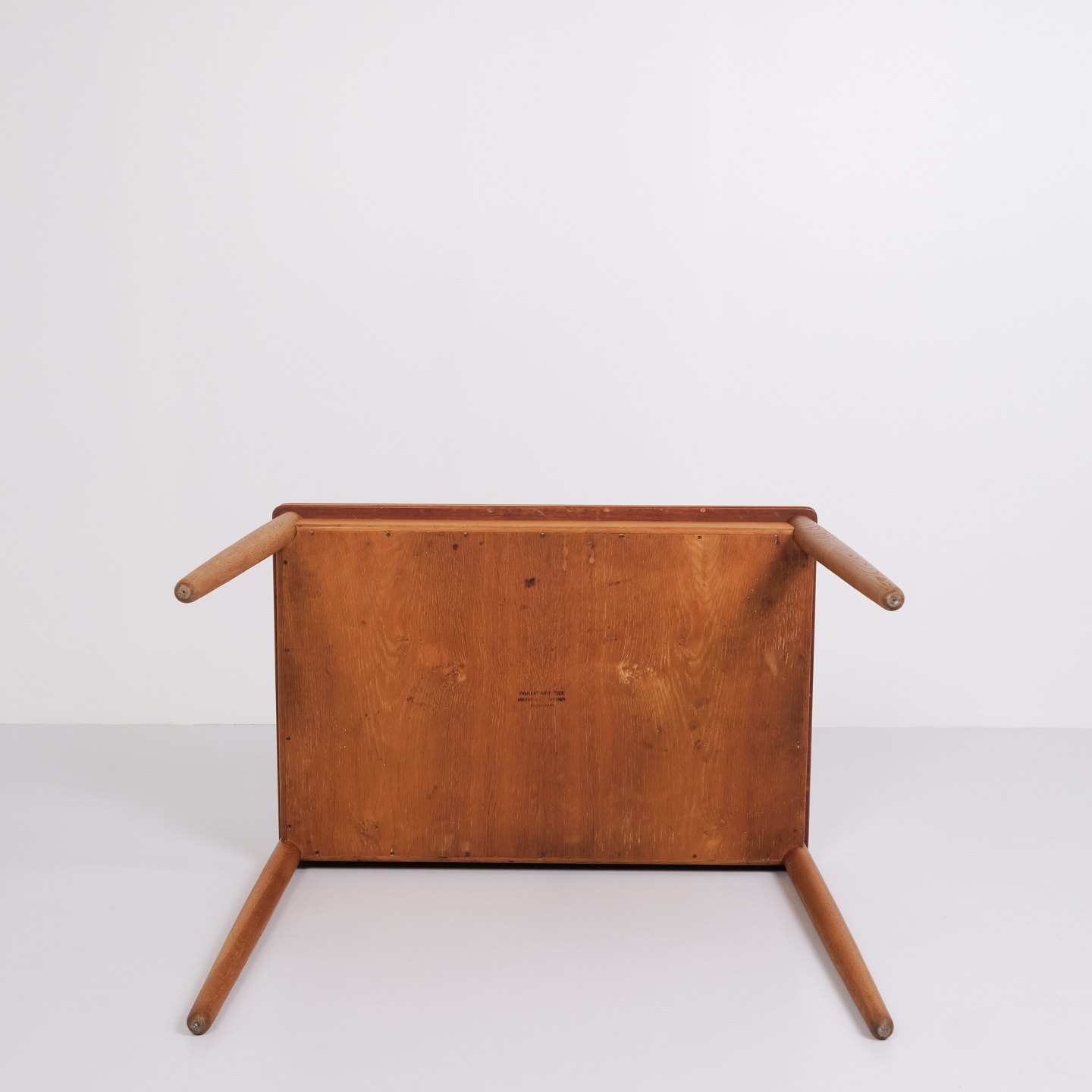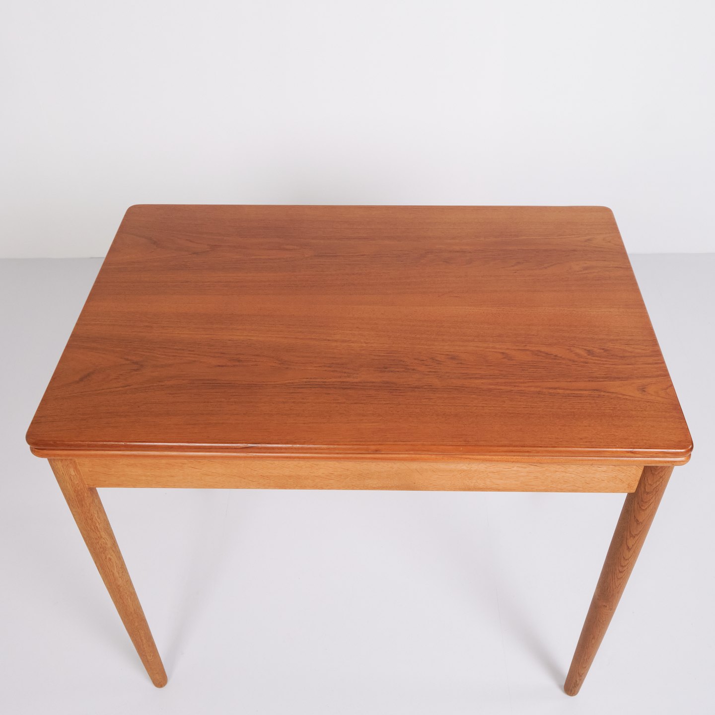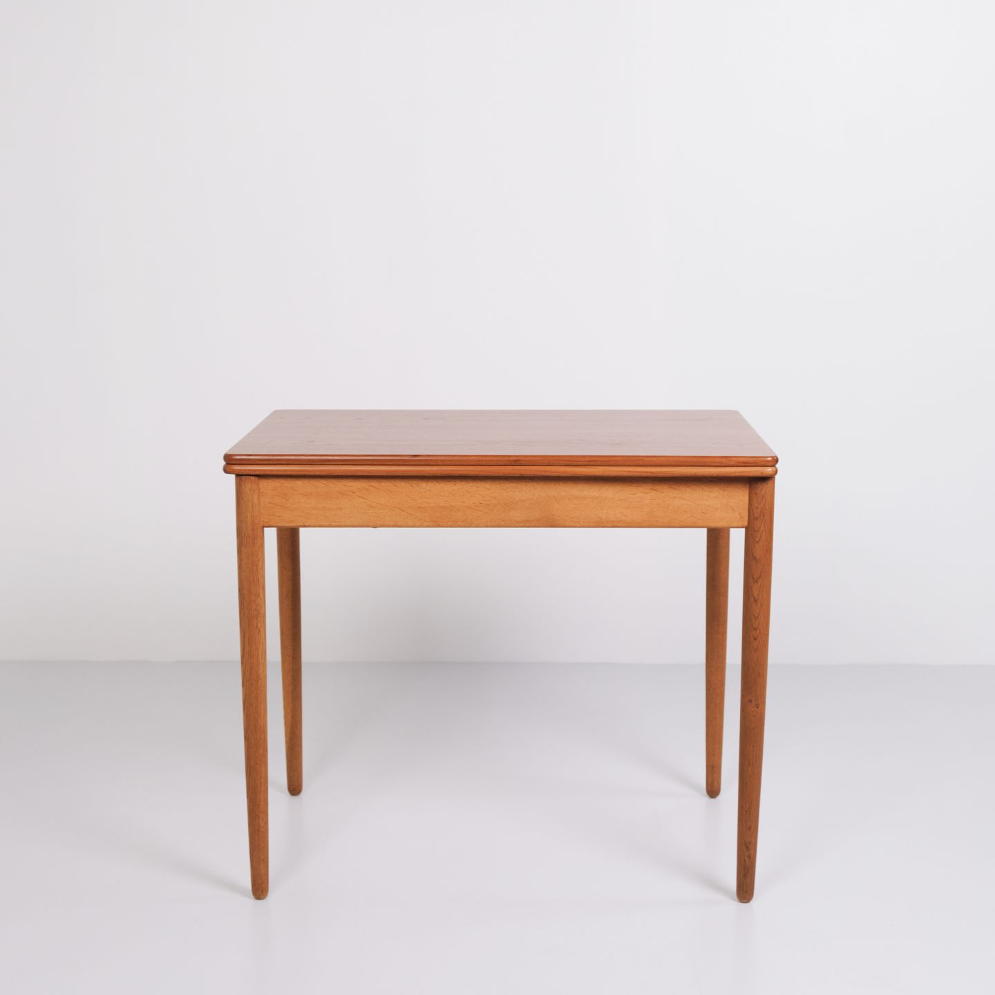 Hans J. Wegner Spiel/Esstisch für Andreas Tuck. Teak und Eiche, 1960er Jahre. Eingebauter Stauraum.— Herkunft: Dänemark