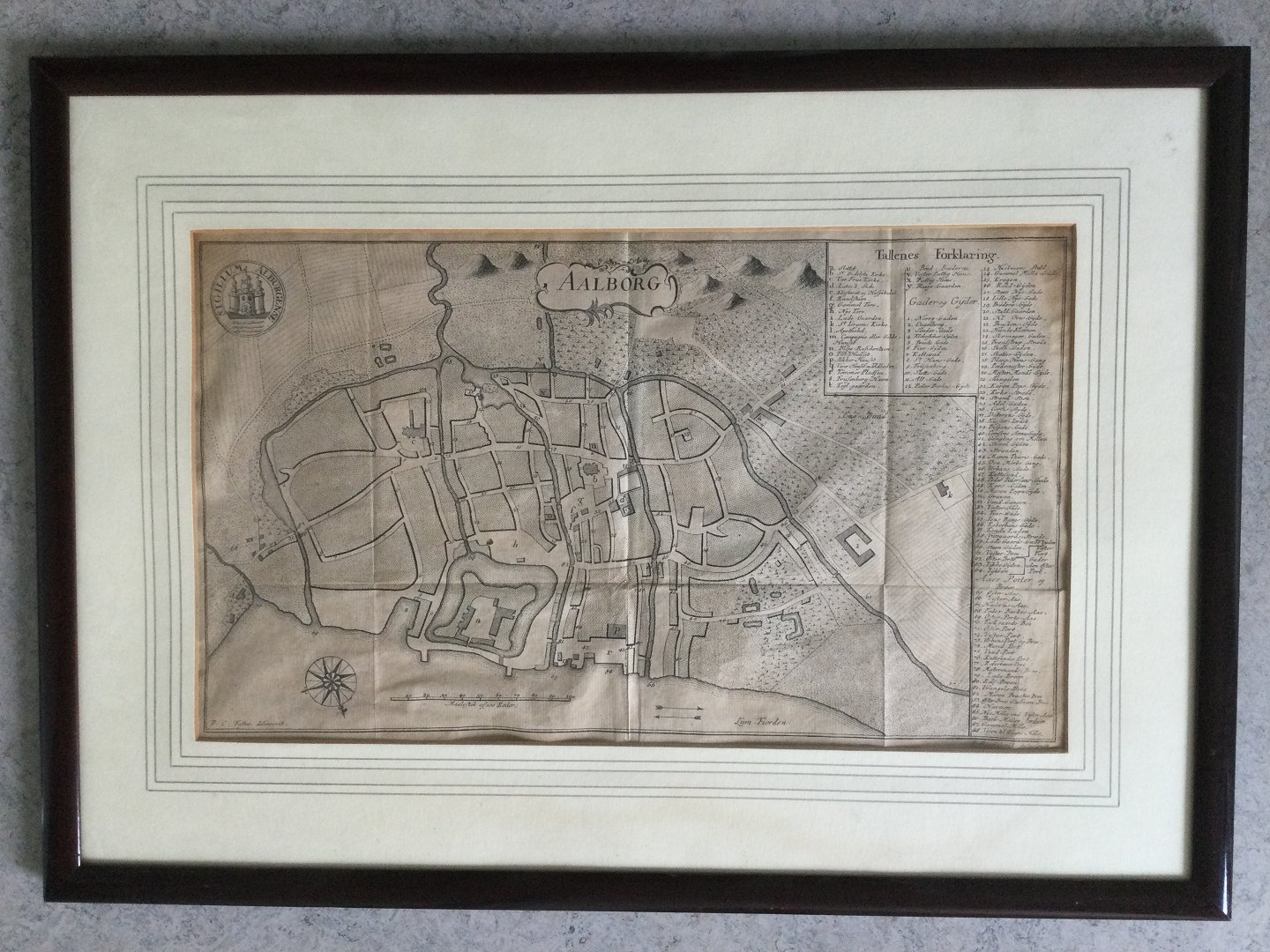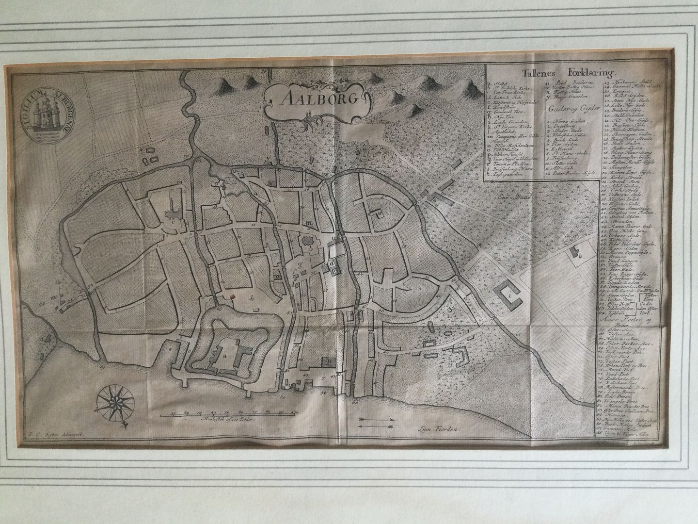 Gammelt kobberstik af Erik Pontoppidan og Johan Georg Schmid - Aalborg By 1768 - fra Danske Atlas.