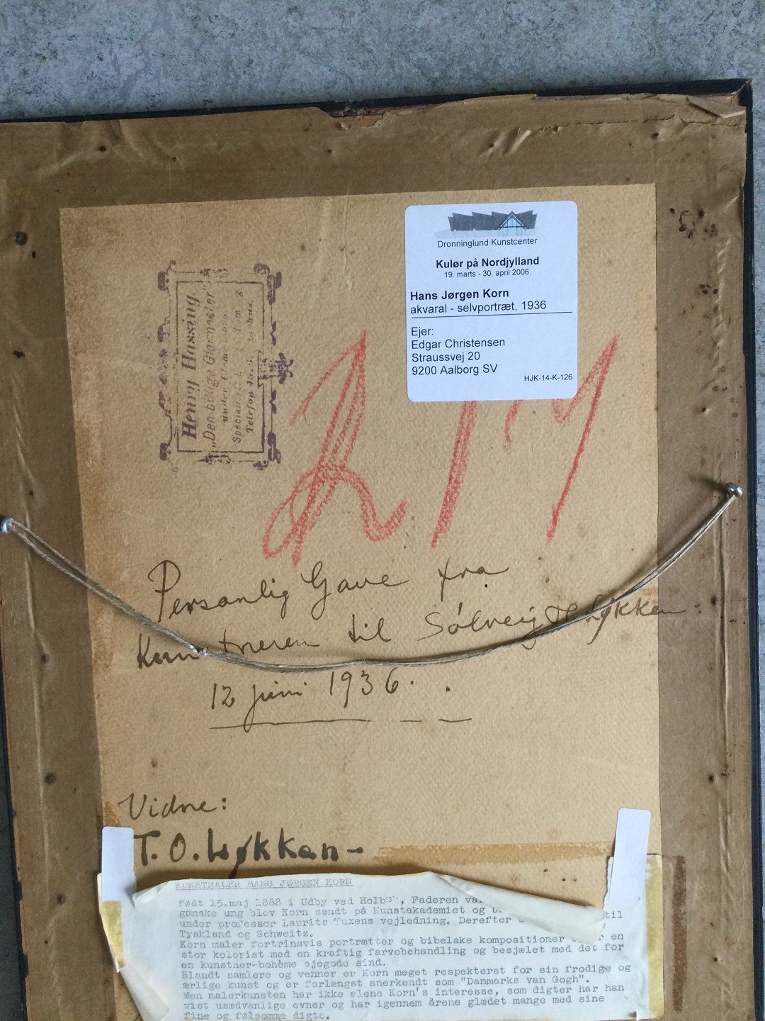 Bagpå - "Personlig Gave fra Kunstneren til Solveig H. Løkken 12. juni 1936.