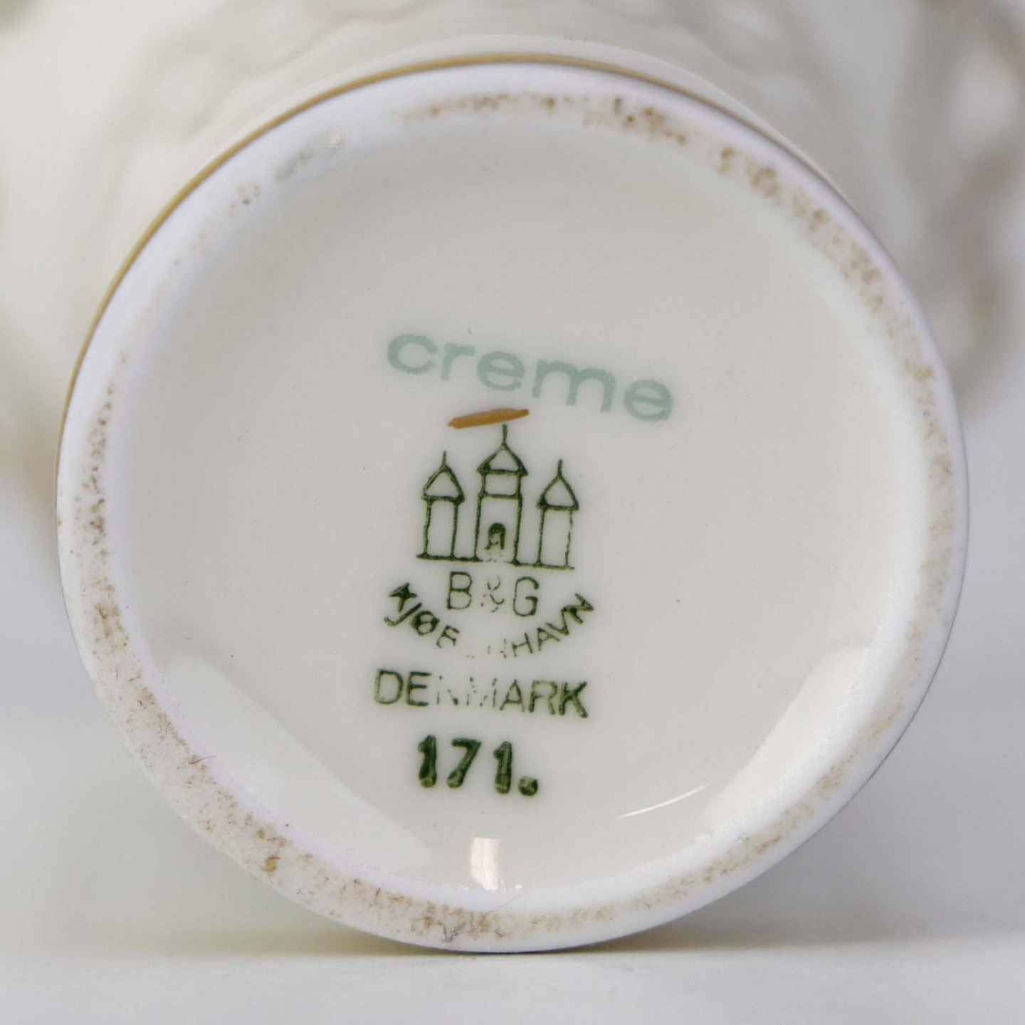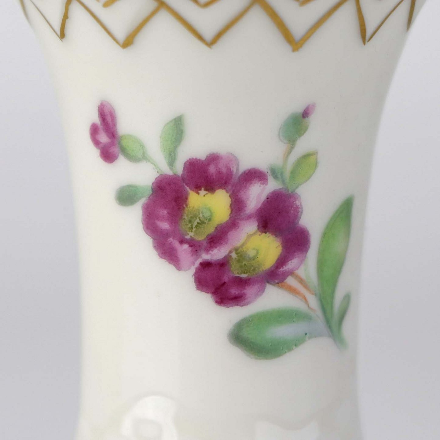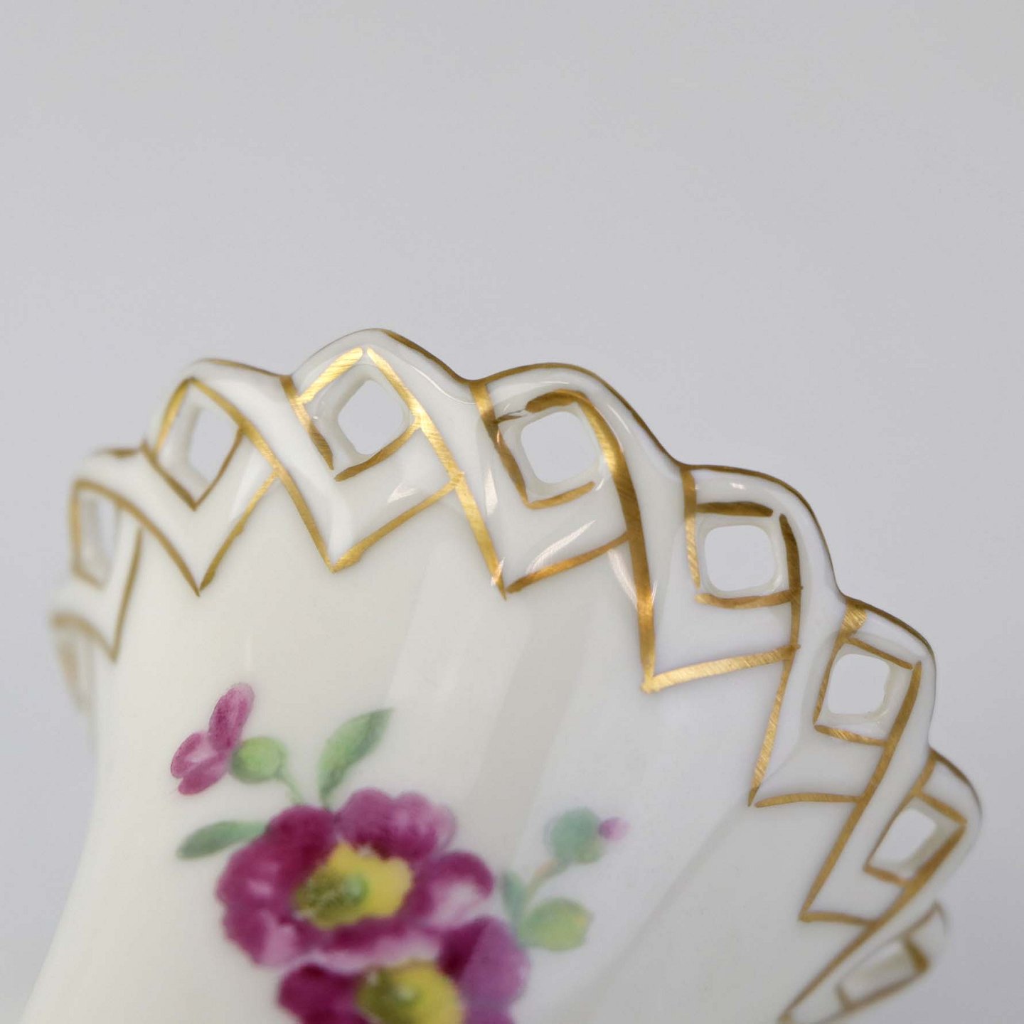 Lille vase i porcelæn med gennembrudt kant fra stellet Saksisk blomst creme. Nr. 171Producent Bing & Grøndahl