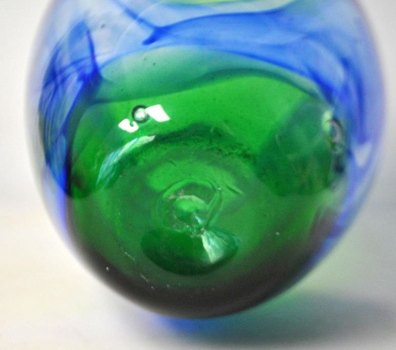 Dänischer Künstler (20. Jahrhundert): Glasvase in Blau und Grün. H: 21 cm. Durchmesser: 12 cm.Bestellnummer: 28221
