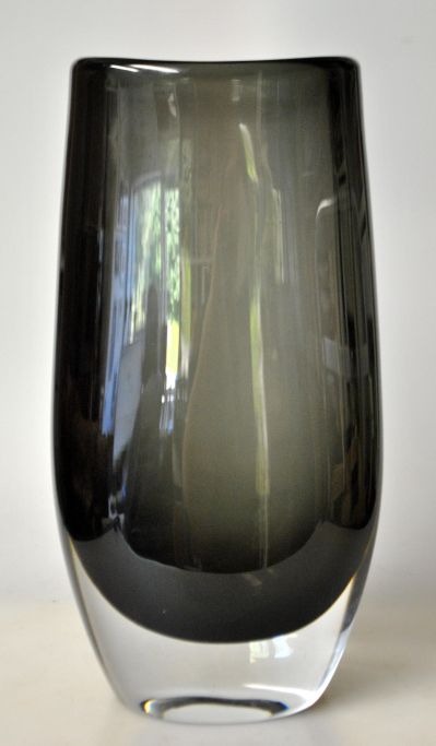 Orrefors Glasvase PU 3918, 20. Jahrhundert. Schweden. Entwurf: Sven Palmqvist (1906 - 1984). Rauchglas. Unterzeichnet. H: 25 cm. B: 12 cm.Bestellnummer: 28222