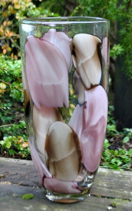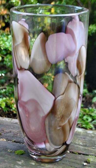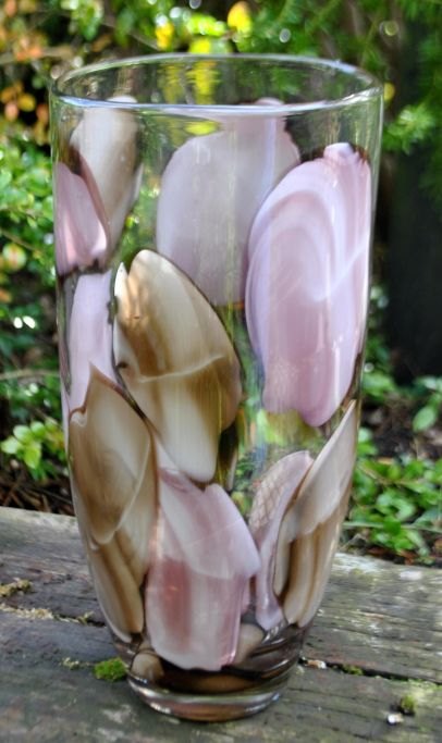 Glasvase mit rosa und braunem Dekor, 20. Jahrhundert. H: 30 cm. Durchmesser: 14 cm.Bestellnummer: 28230