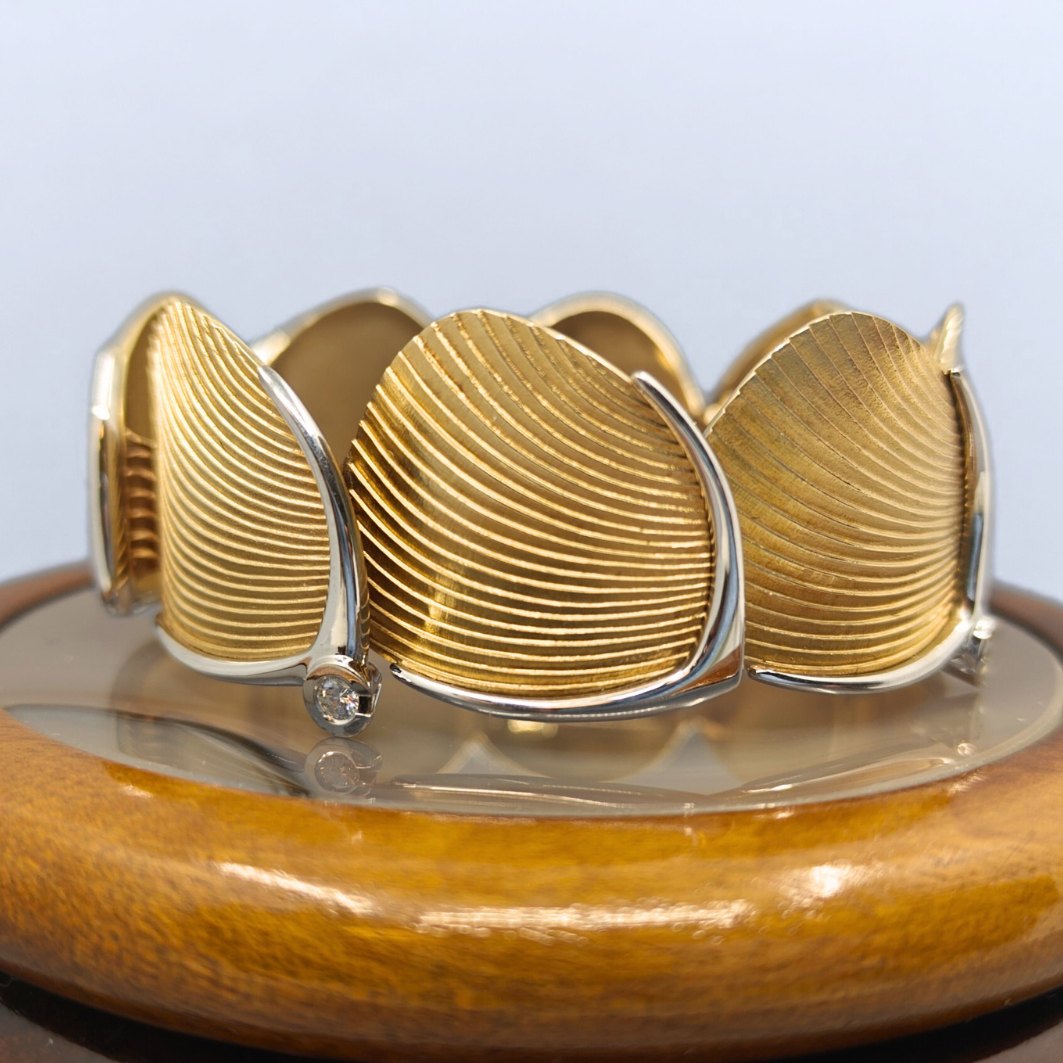 Ole Lynggaard; Leddelt armbånd i 14 kt guld og hvidguld, med fire diamanter, i alt 0.28 ct. W VS - VVS. Med kasselås og sikkerheslås.L. ca. 17,5 cm