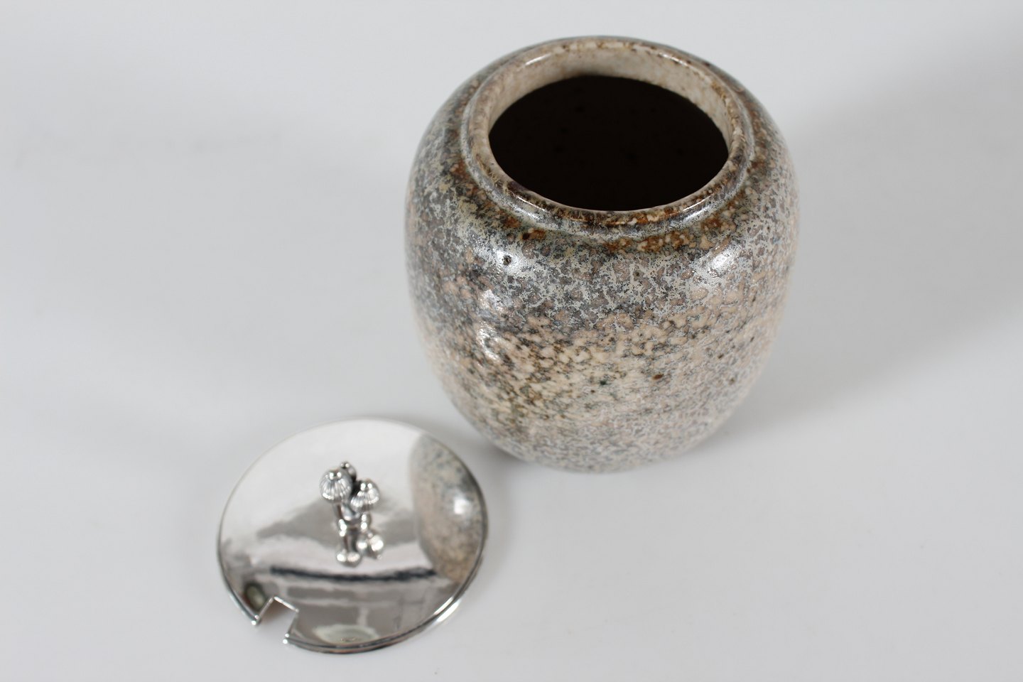 Bode Willumsem + Hans HansenLågkrukke af stentøj m/sølvlåg