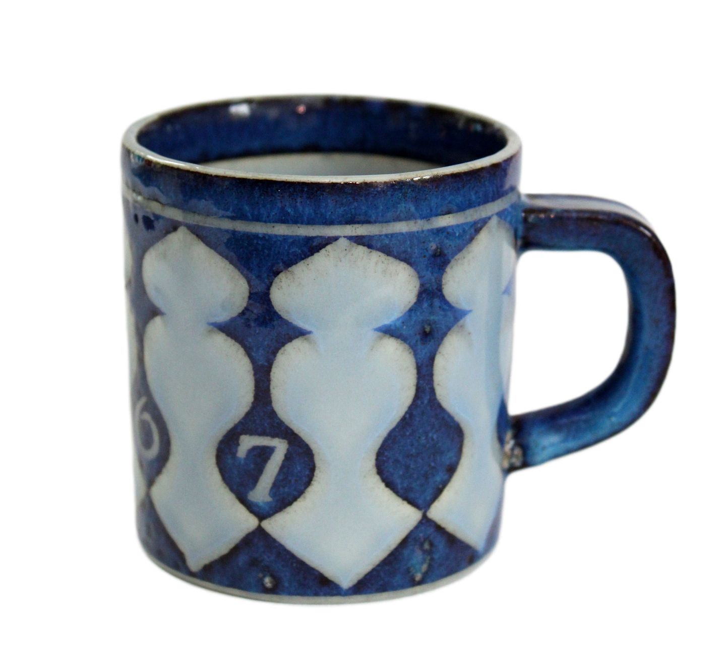 Aluminia, Lille årskrus i kunstfajance. Designer Nils Thorson. Dette er det første årskrus. Nr. 3495. Årskrus er produceret fra perioden 1967 til 2014, fra 1968 er det Royal Copenhagen. Højde 7,5 cm. Diameter 6,8 cm. Lidt ujævn bemalet kant. Pris: 700 kr. stk. Lager: 1 Händler
