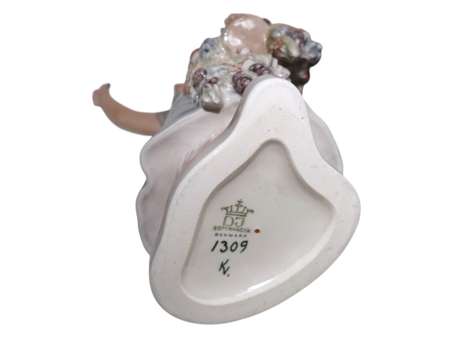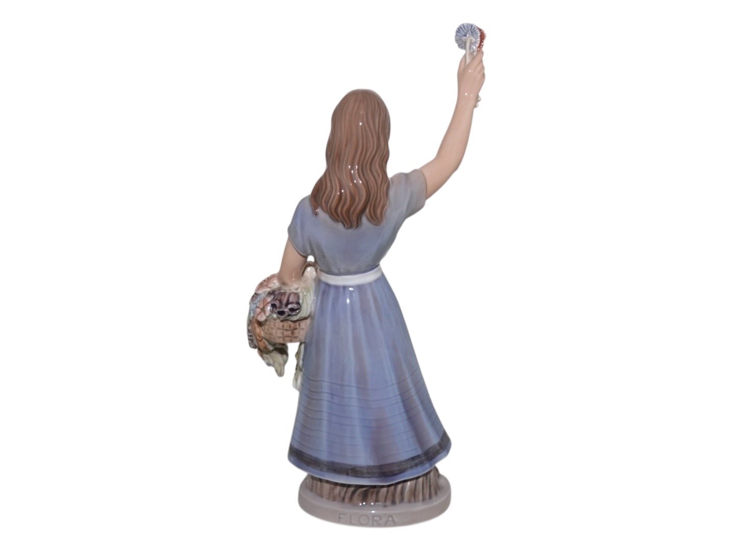 Sjælden Dahl Jensen figur, ung dame med blomster med titlen "Flora".Af fabriksmærket ses det, at denne er produceret mellem 1928 og 1985.