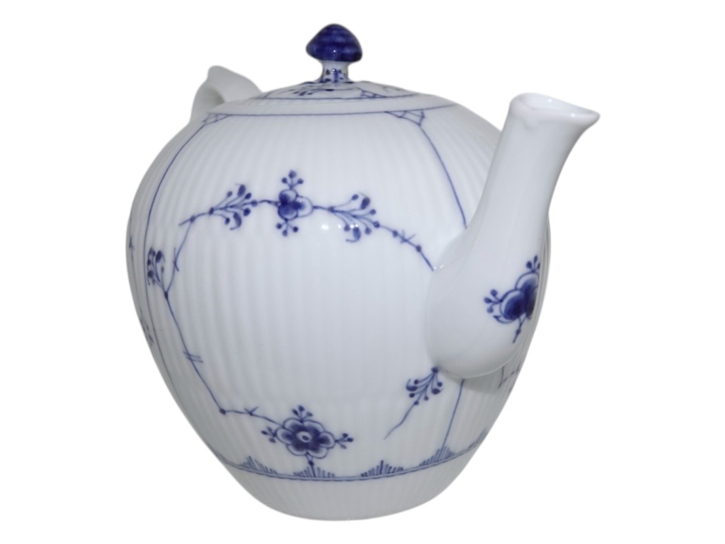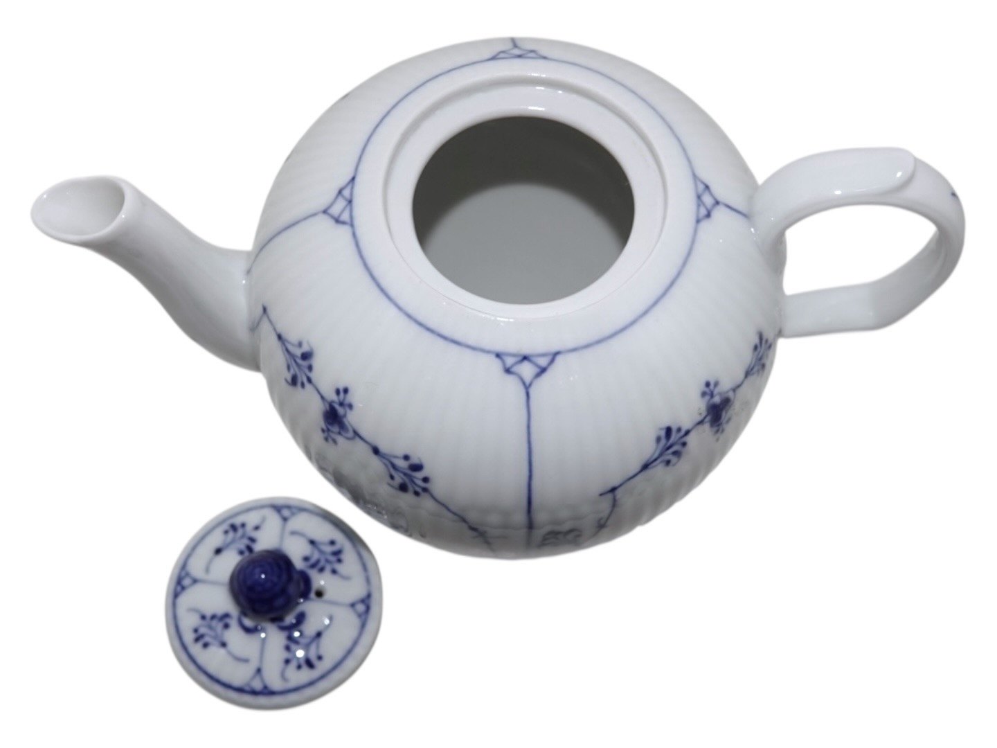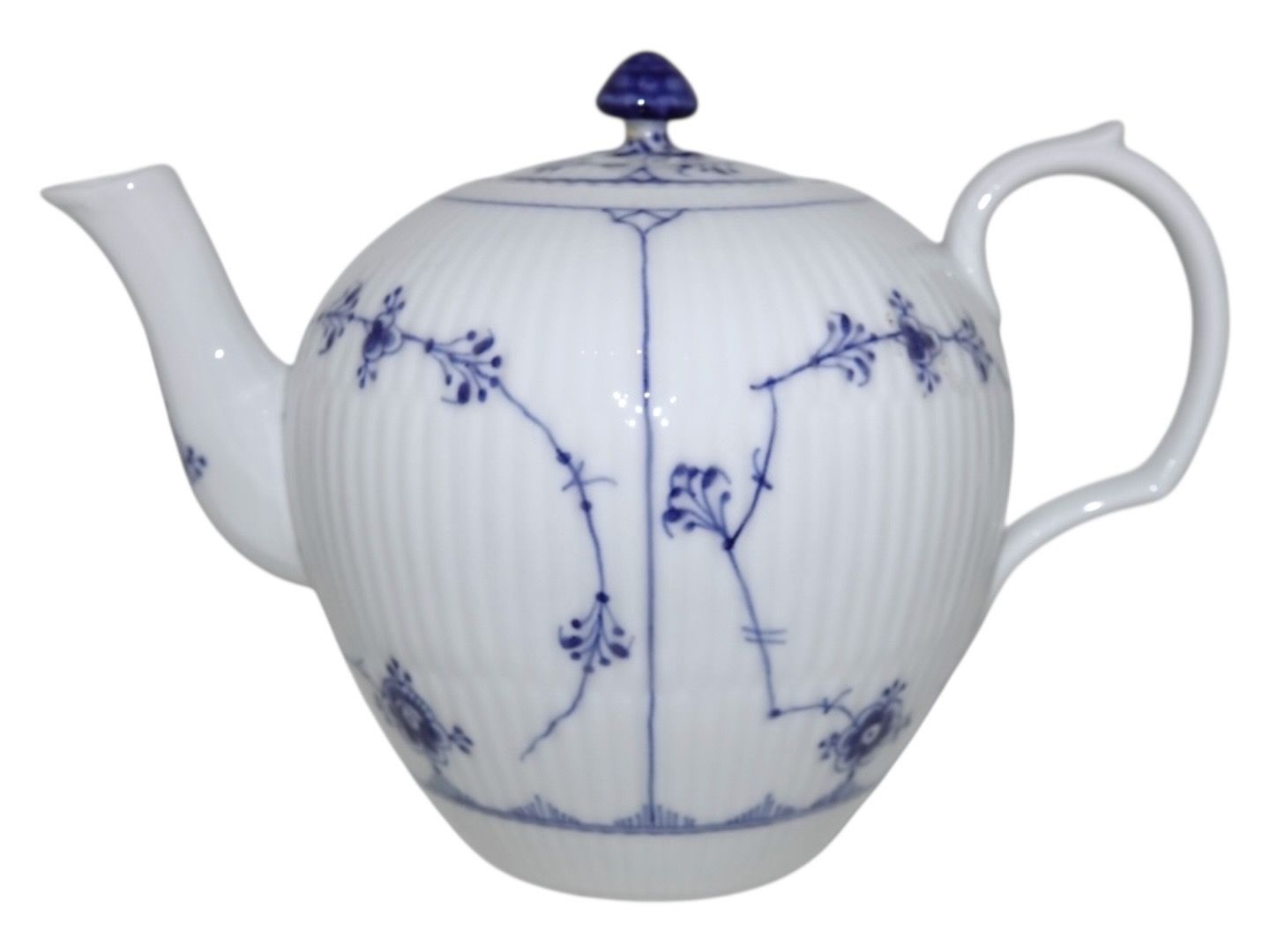 Royal Copenhagen Musselmalet Riflet, sjælden tekande.Af fabriksmærket ses det, at denne er produceret mellem 1898 og 1923.