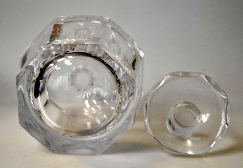 Orrefors-Kristallkaraffe, 20. Jahrhundert. Schweden. Geschliffener achteckiger Körper und Stopfen. Gestempelt: Orrefors 1623/111. H: 20,5 cm.Perfekter Zustand!