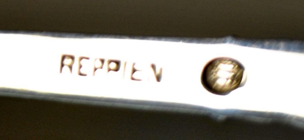 Reppien-Silberspatel, 1952, Skanderborg, Dänemark. Griff mit stehender nackter Frau. Gestempelt. L.: 15 cm. Gewicht: 30 Gramm.Perfekter Zustand!