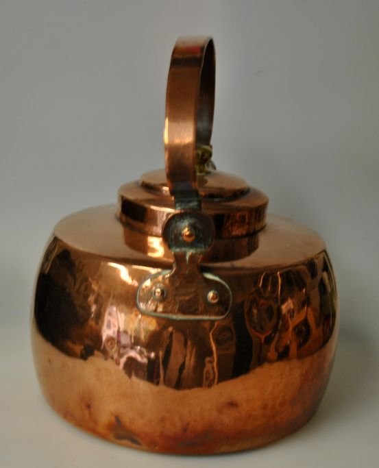 Dänischer antiker Kupferkessel, 19. Jahrhundert. Mit Henkel und Ausguss. Mit Messingknauf. Ungestempelt. H.: 18 cm. Durchmesser: 20 cm. Höhe am Henkel: 26 cm.Super Zustand!