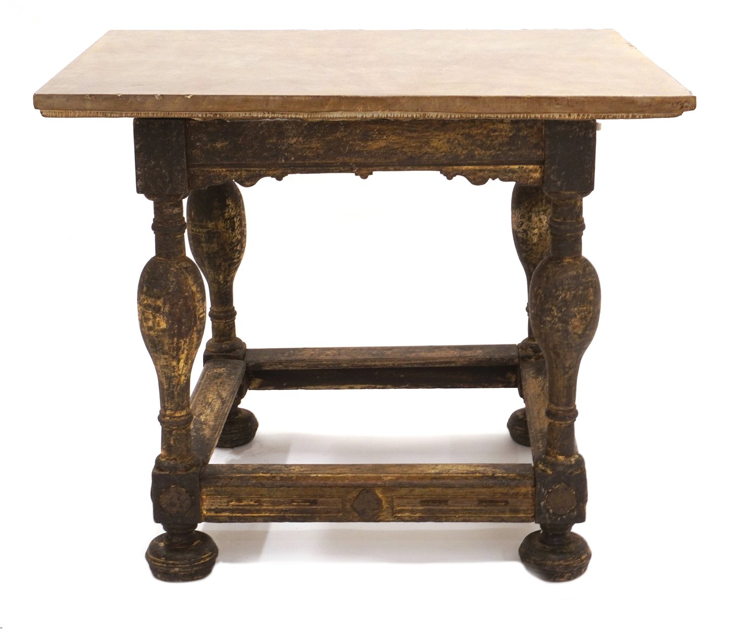 Schwarz dekorierter Barocktisch mit grauer Steinplatte. Dänemark um 1750. H: 86cm. Platte: 79x100cm