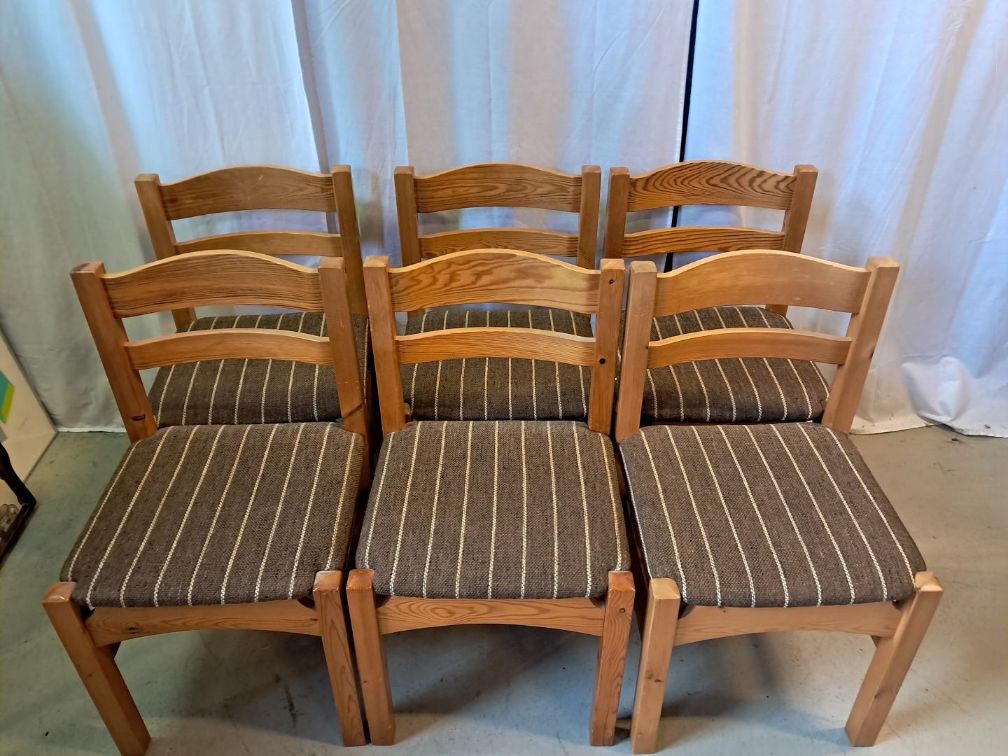 6 Stole i massivt fyrretræ, fra 1980erne.De har brugsspor.