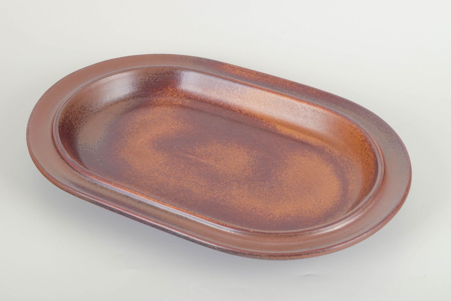 Ovalt serveringsfad i stentøj, 1970’erne.