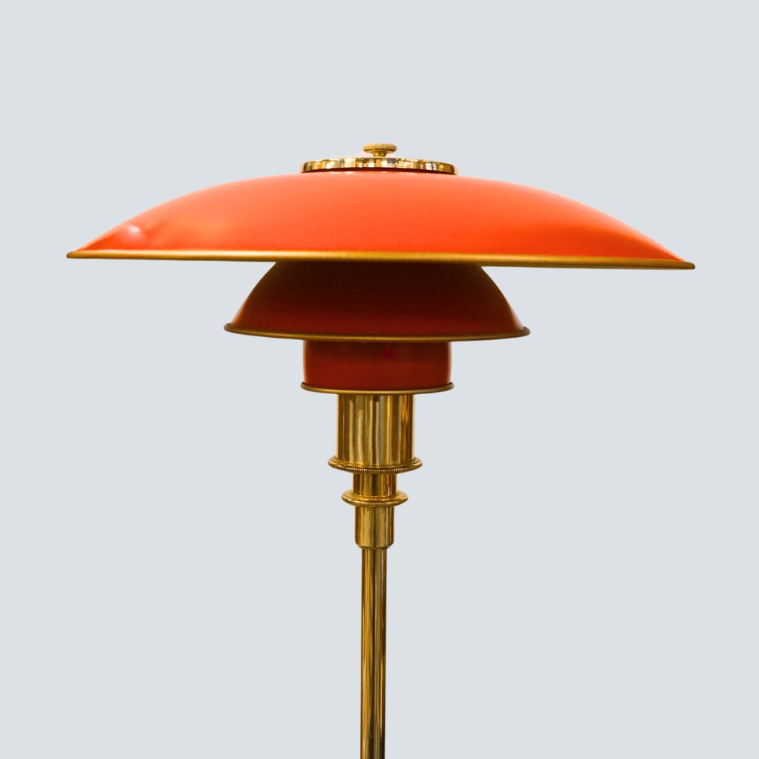 Poul Henningsen; 3/2 Jubilæums bordlampe med rødlakeret skærme