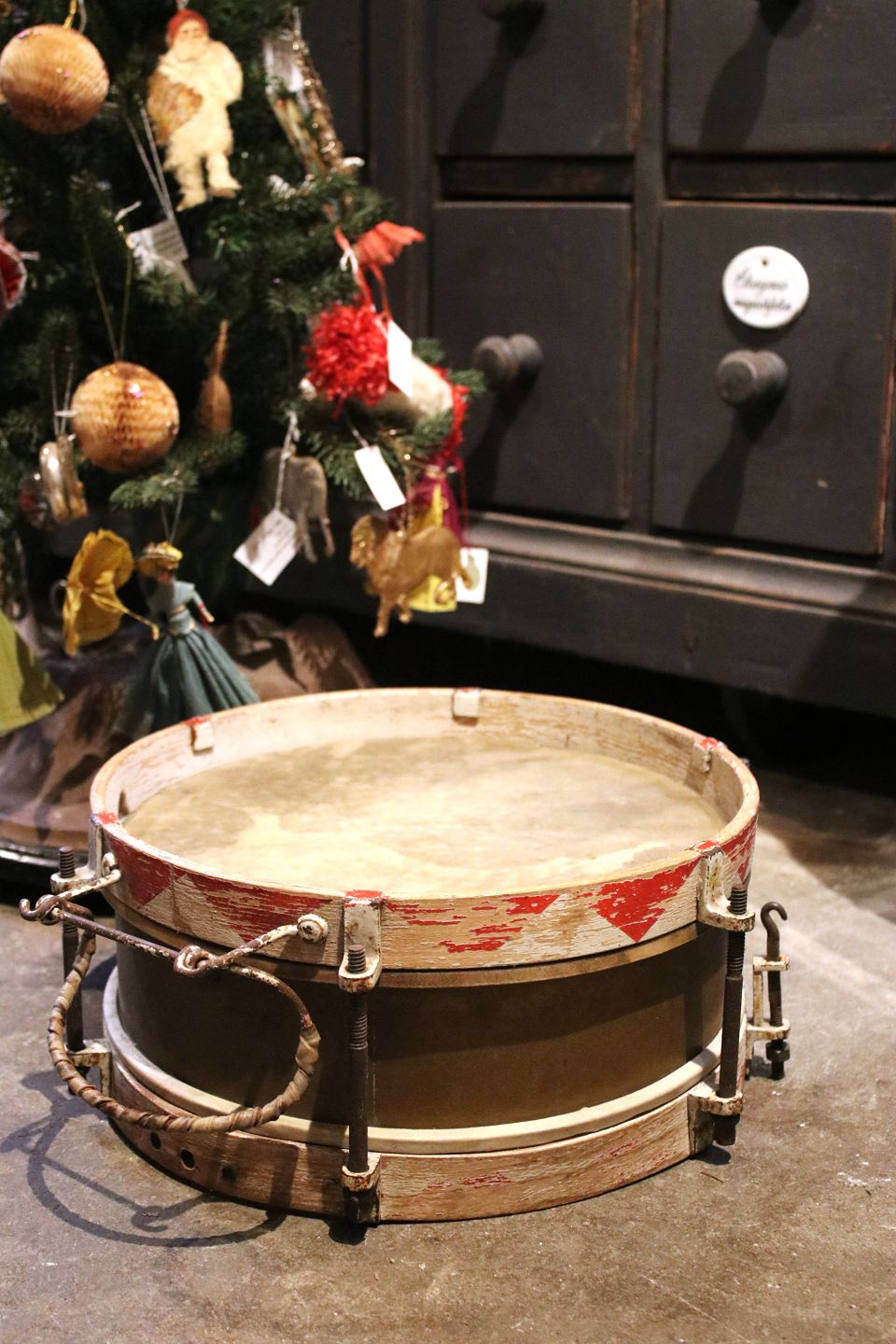 Dekorativ , gammel tromme i messing med malet træ kanter (Rød / Hvid) og har en rigtig fin patina. H: 14cm. Dia.: 35cm.