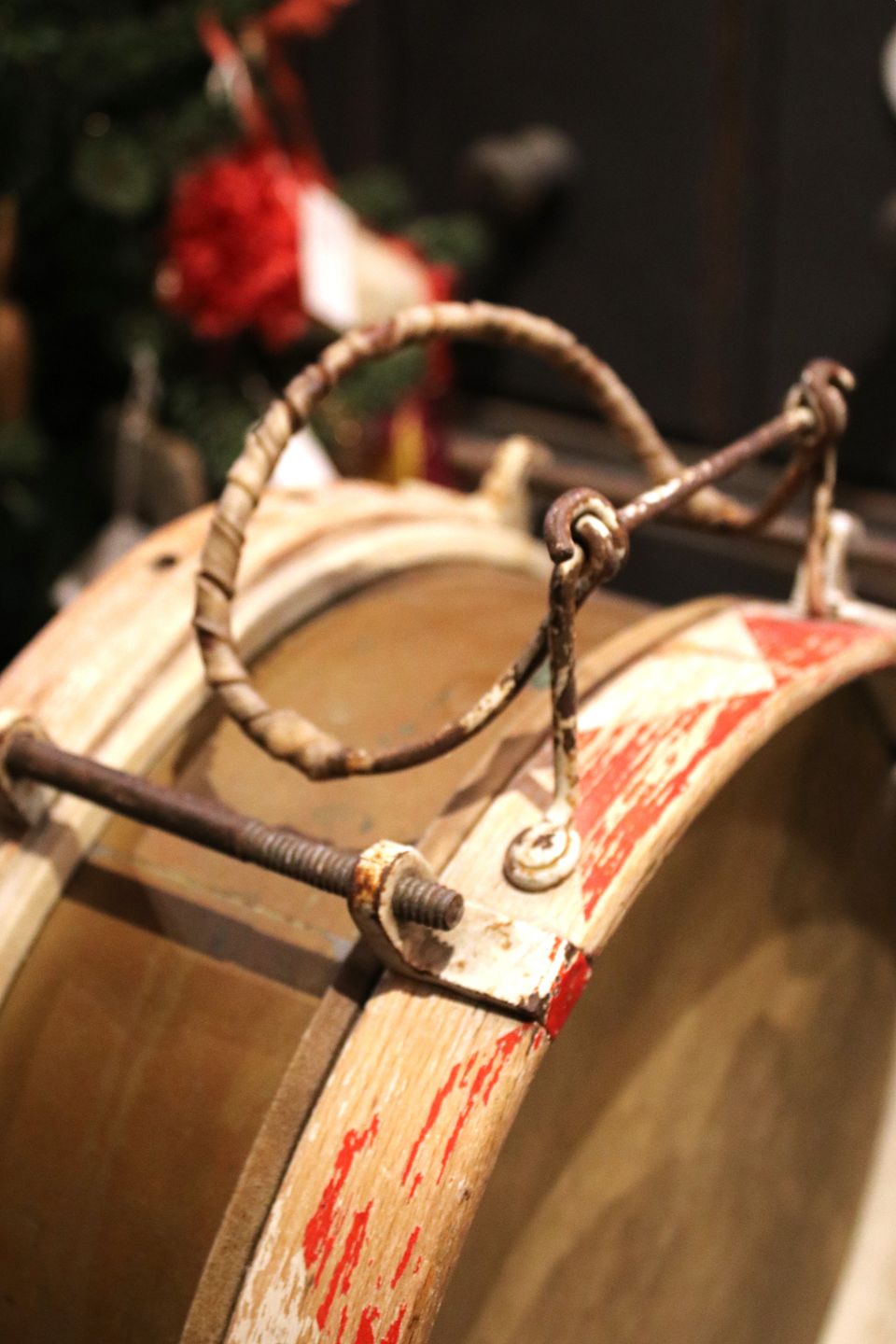 Dekorativ , gammel tromme i messing med malet træ kanter (Rød / Hvid)...
