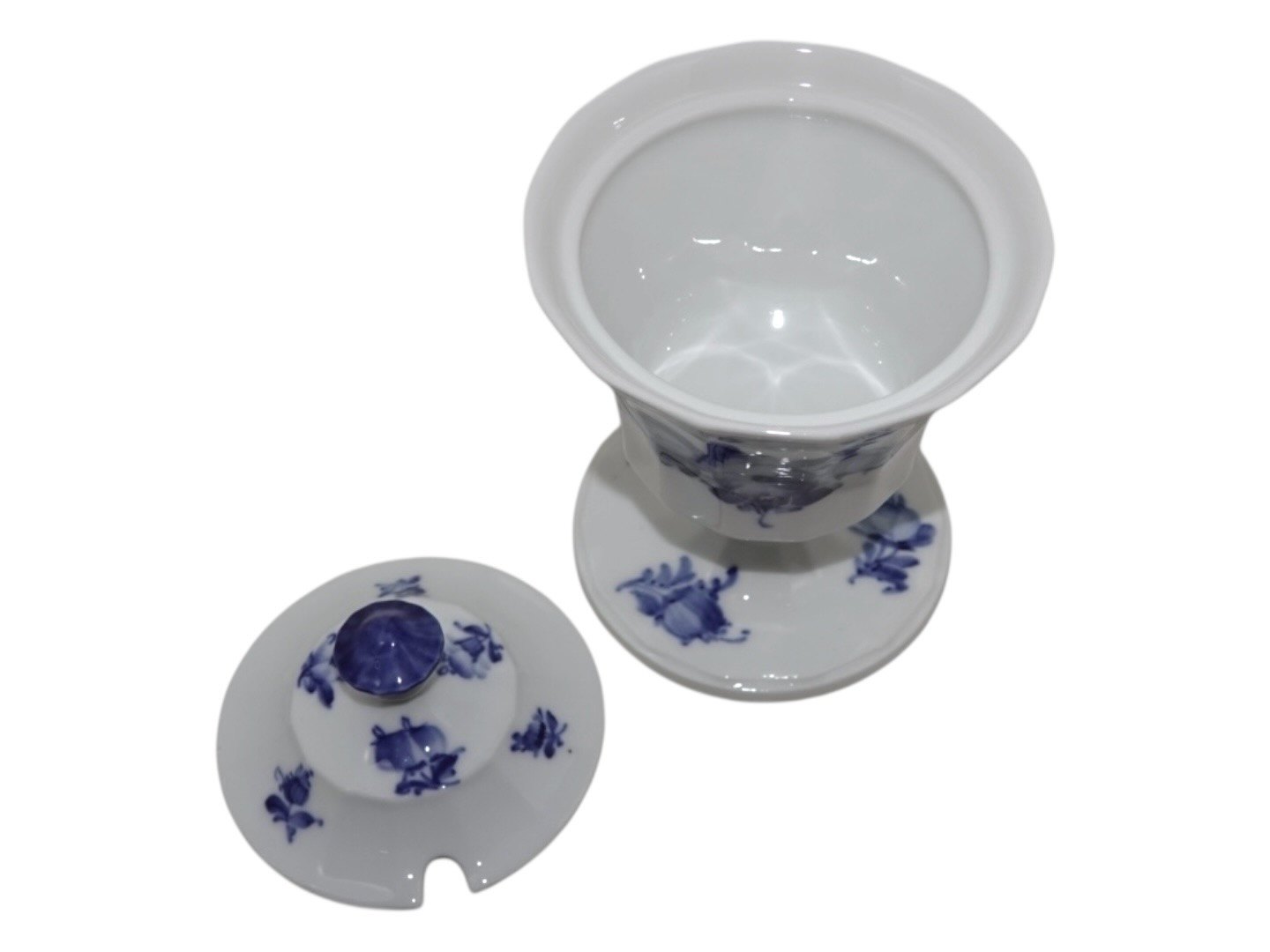 Royal Copenhagen Blå Blomst Kantet, sjælden marmeladeopsats.Af fabriksmærket kan det udledes, at denne er produceret mellem 1923 og 1928.