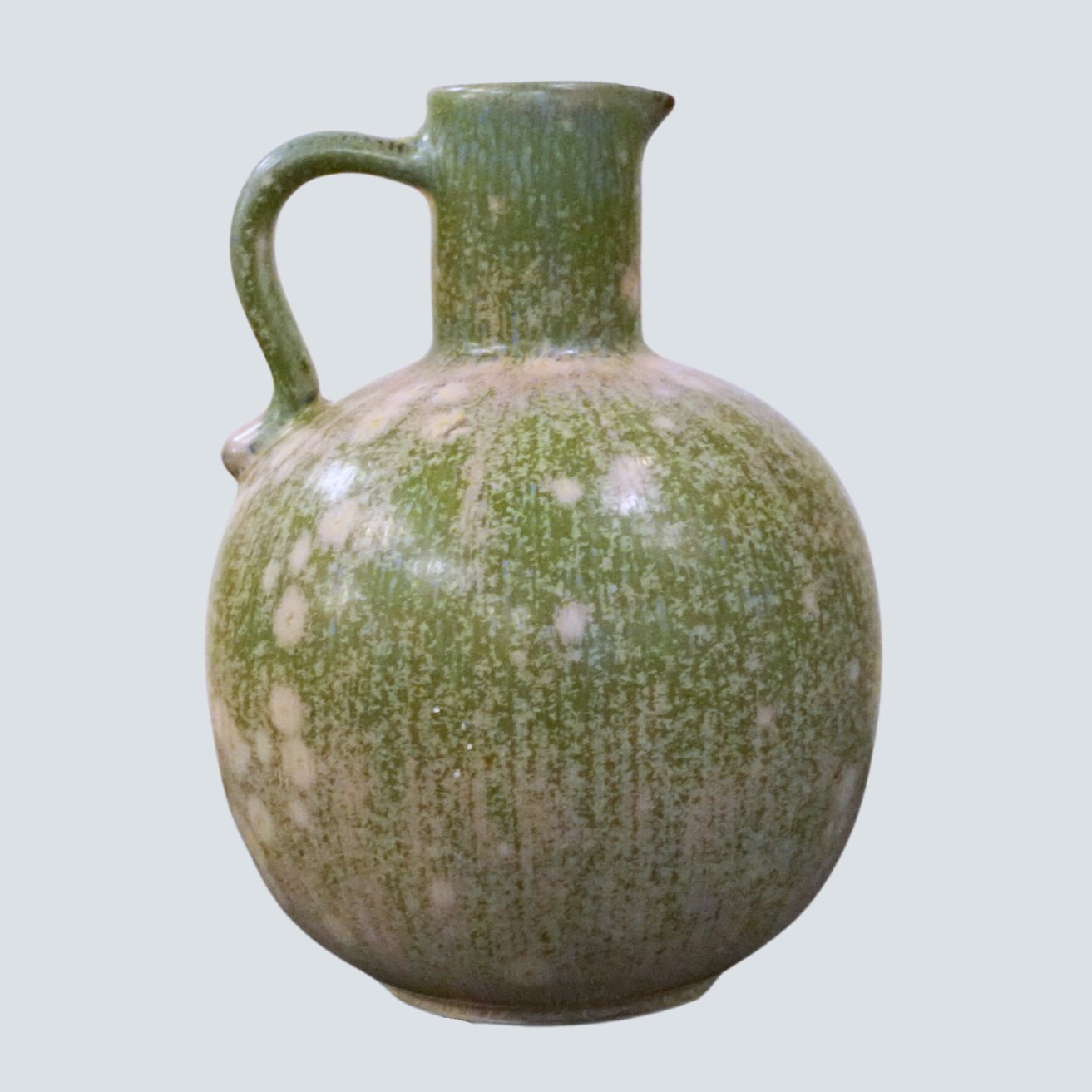 Bing & Grøndahl keramik.Bing & Grøndahl; Keramik kande med hank i grønlig krystalglasur #T.304.