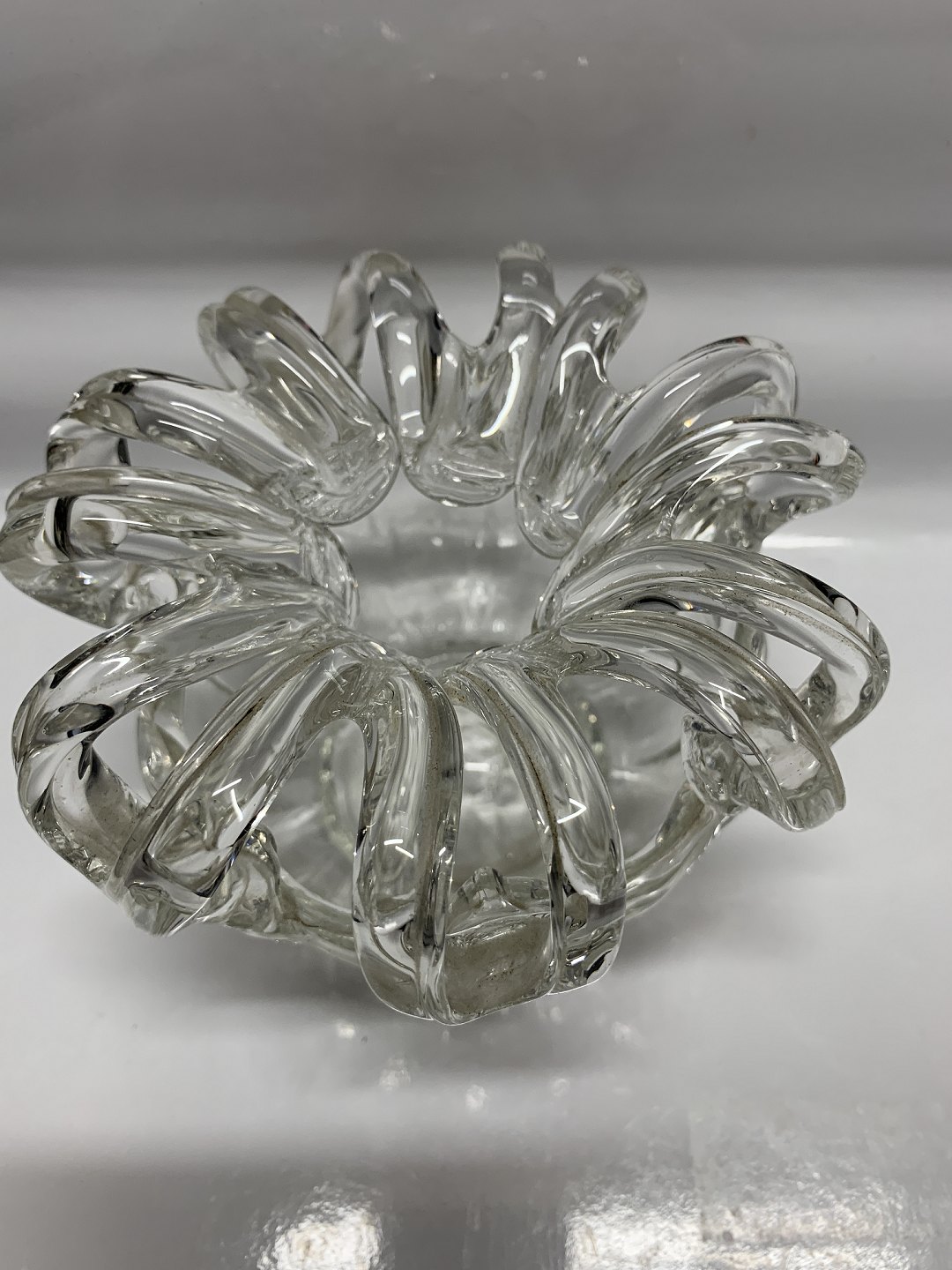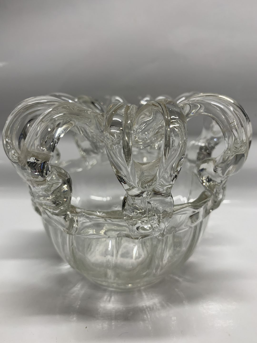Stor Brudekrone vase i klar glas.Højde: 12 cm.