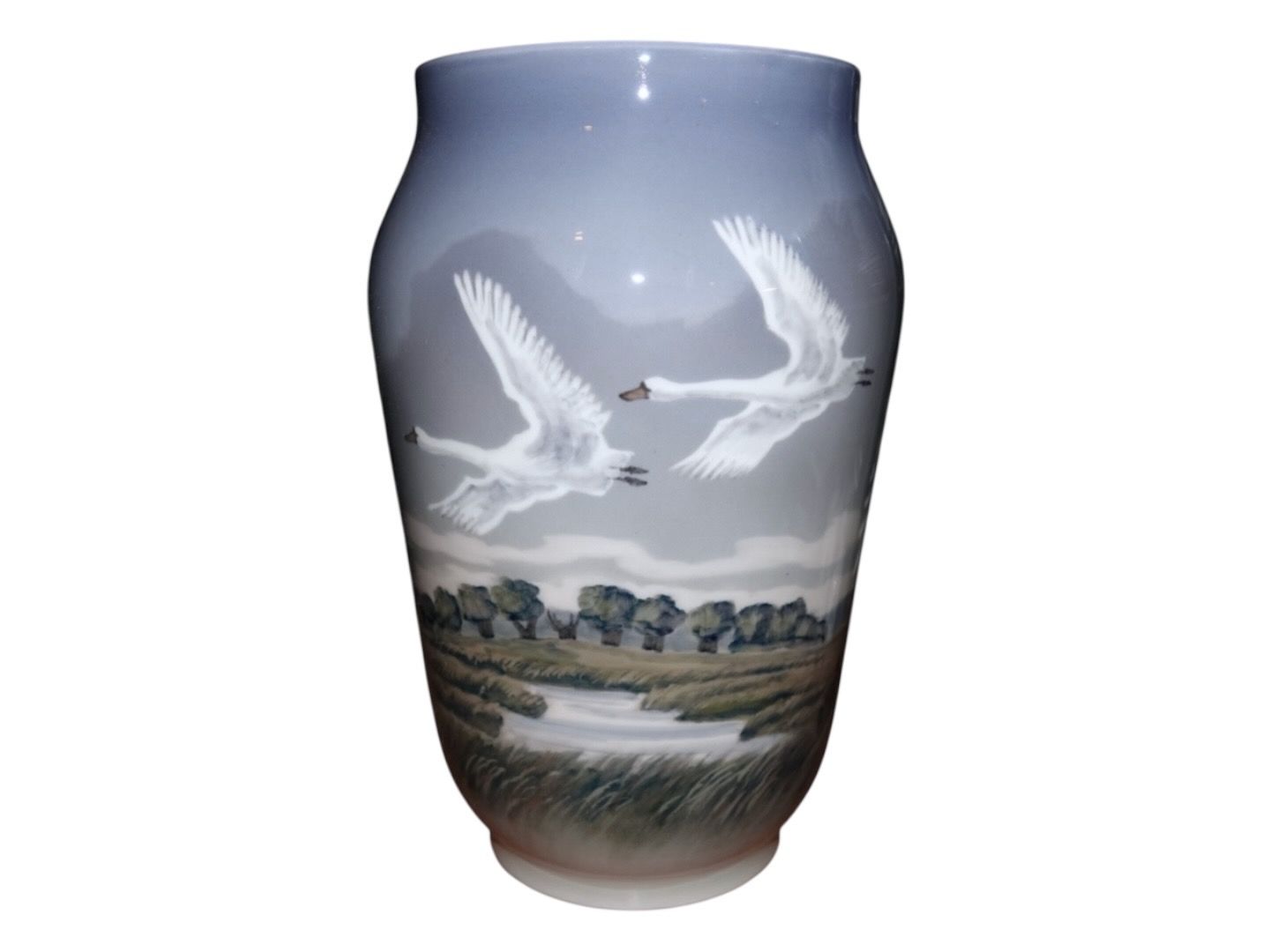 Stor Royal Copenhagen vase med flyvende svaner.Varen er på fjernlager. Bestil online, eller kontakt os, hvis du vil se den i butikken — vi kan ofte have den klar samme dag.