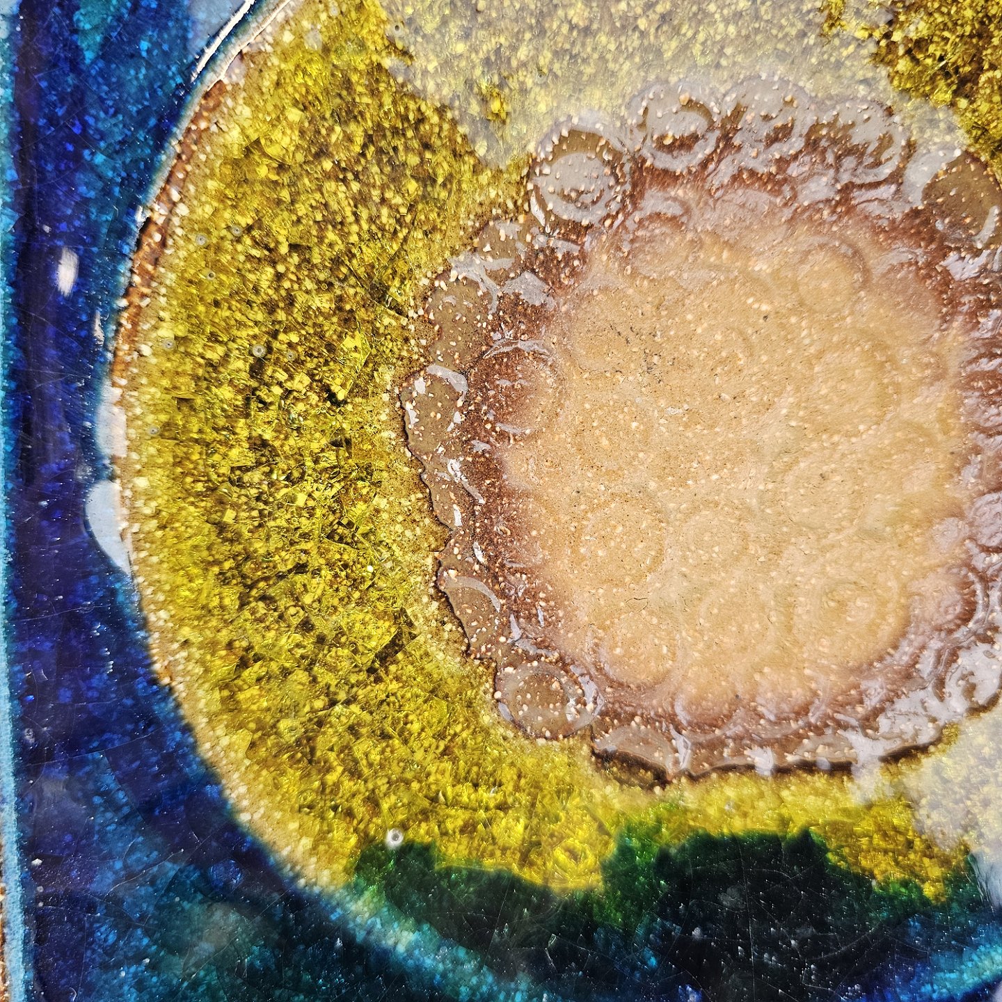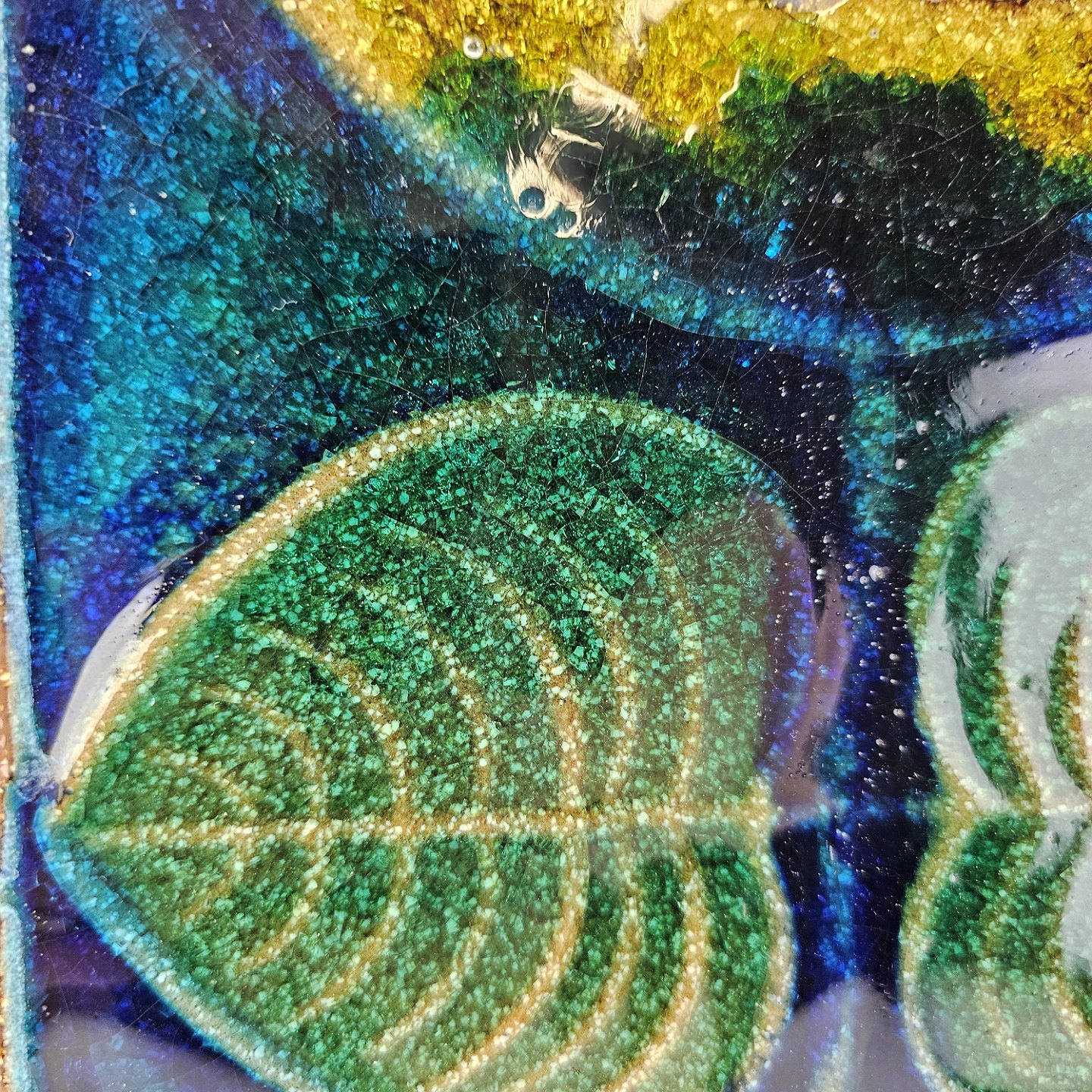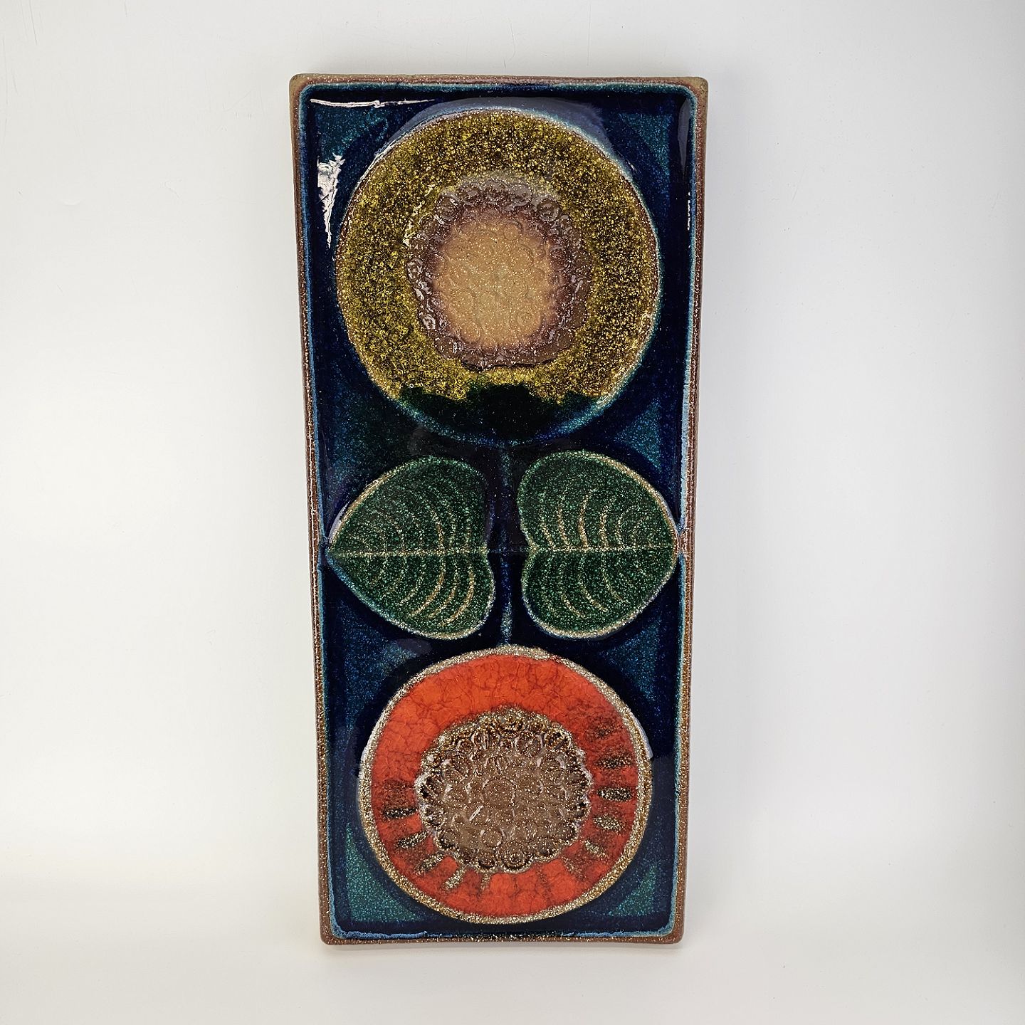 Relief i glaseret højbrændt stentøj med motiv af to blomsterNr. 3540
