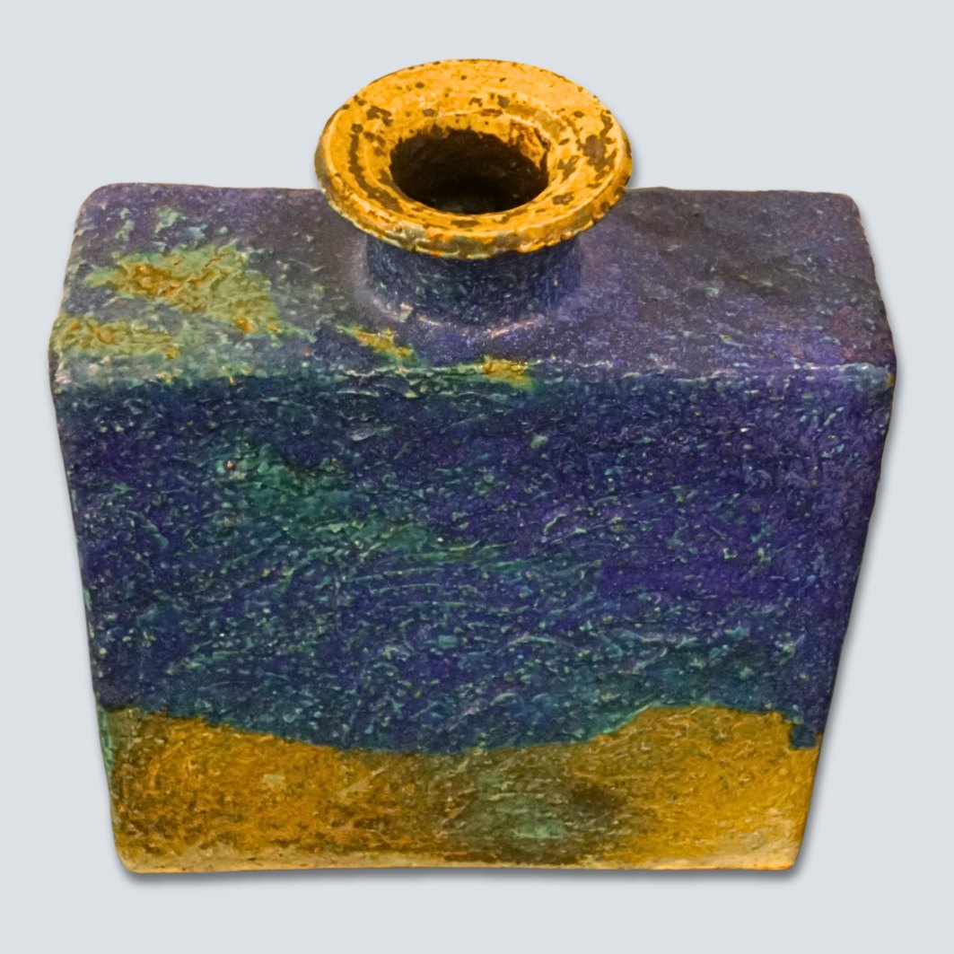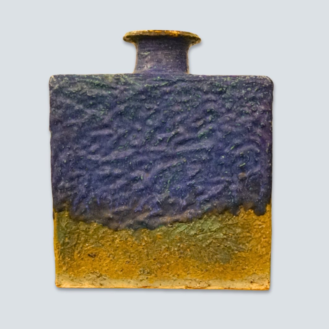 Annikki Hovisaari for Arabia; Firkantet keramik vase med blå glasur. Fra 1970érne. H. 25,5 cm. L. 21,5 cm. B. 8 cm.