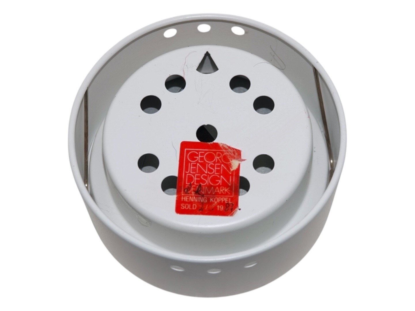 Georg Jensen Termometer i hvid kasse med sort skive.Designet af Henning Koppel.