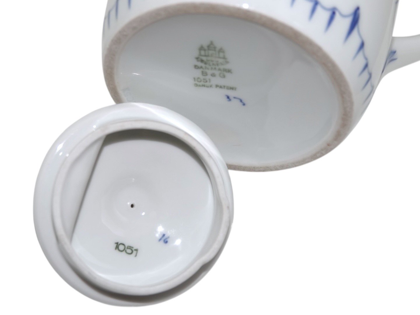 Bing & Grøndahl Blåmalet / Musselmalet tykt jernporcelæn, kaffekande.Af fabriksmærket ses det, at denne er produceret mellem 1948 og 1952.
