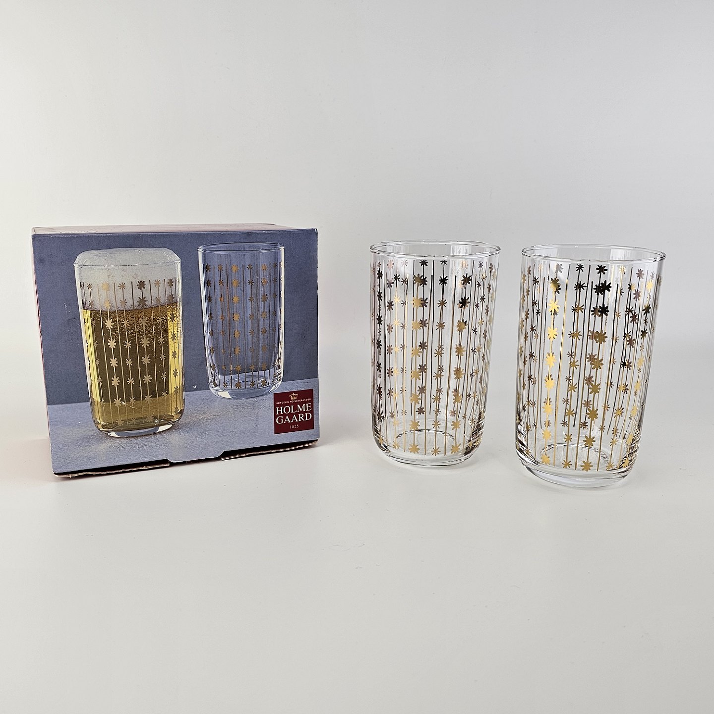 To ølglas med lodrette linjer af stjerner. Fra serien Christmas CrystalFormgiver Dorthe og Peter Svarrer