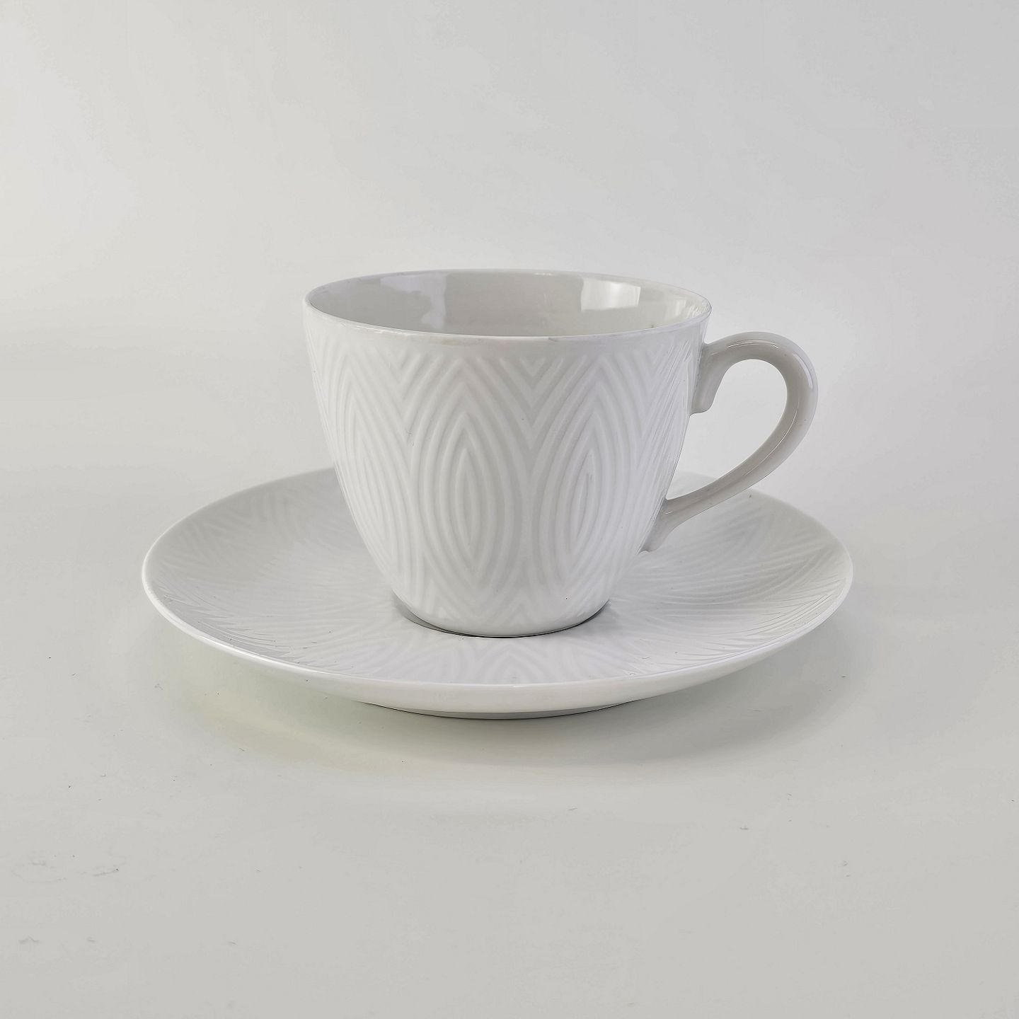Kop med underkop fra stellet Salto i hvidt porcelænProducent Royal Copenhagen
