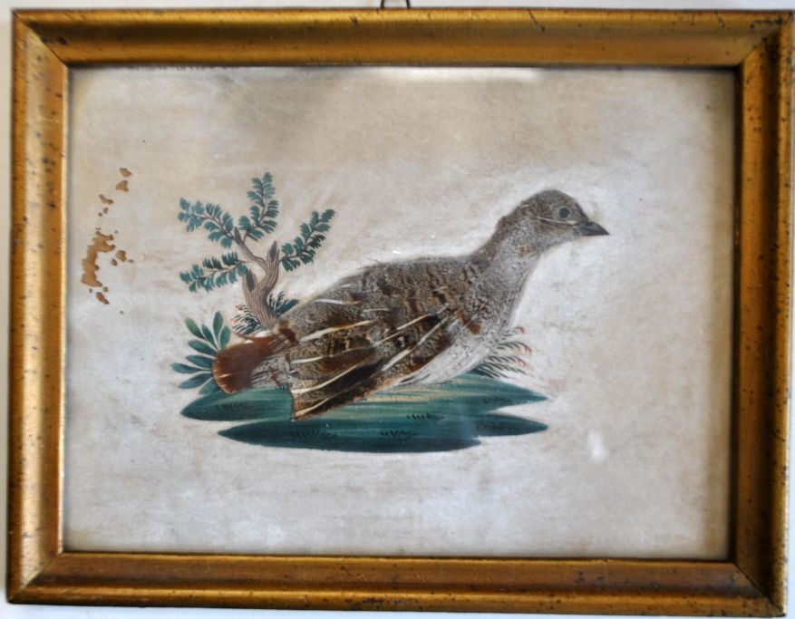 Kiebitz, Wilhelm (1847 - 1869) Dänemark: Ein Rebhuhn. Federbild auf Papier. Mit Aquarell. 13,5 x 18,5 cm.Gerahmt: 17 x 21,5 cm.