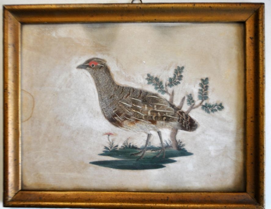 Kiebitz, Wilhelm (1847 - 1869) Dänemark: Ein Rebhuhn. Federbild auf Papier. Mit Aquarell. 13,5 x 18,5 cm.Gerahmt: 17 x 21,5 cm.