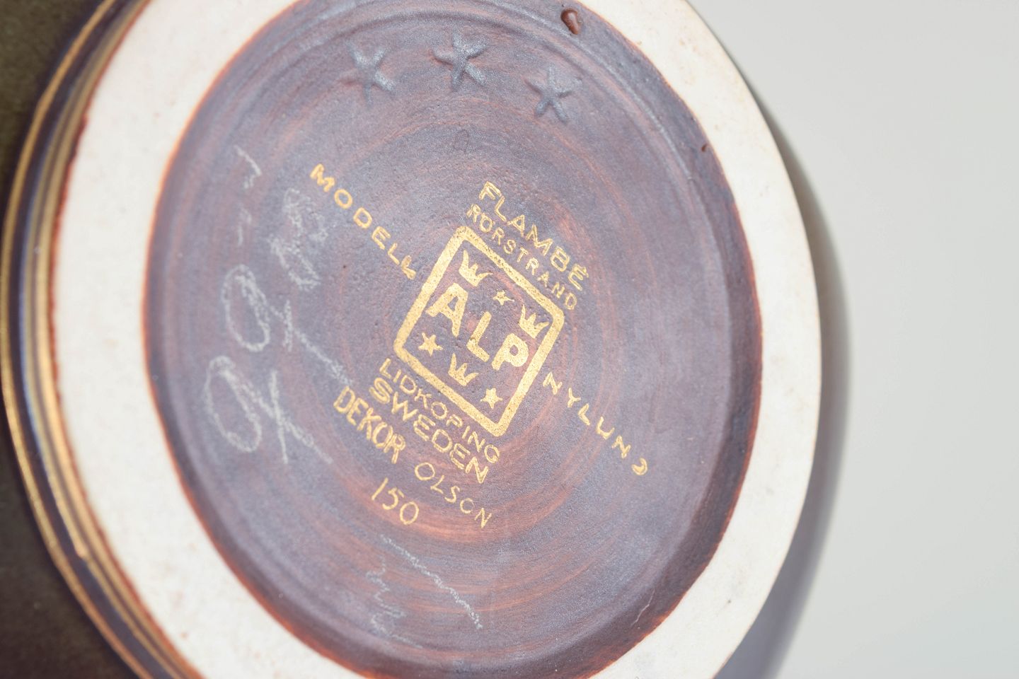 Gunnar Nylund (1904-1997) var en af Nordens mest indflydelsesrige keramikdesignere i det 20. århundrede, kendt for sine elegante former, raffinerede glasurer og naturinspirerede dekorationer. Efter sin succes hos Rörstrand arbejdede han også for mindre værksteder som Alpi i Lidköping, hvor han skabte mere håndmalede og kunstnerisk orienterede arbejder, ofte i små oplag.