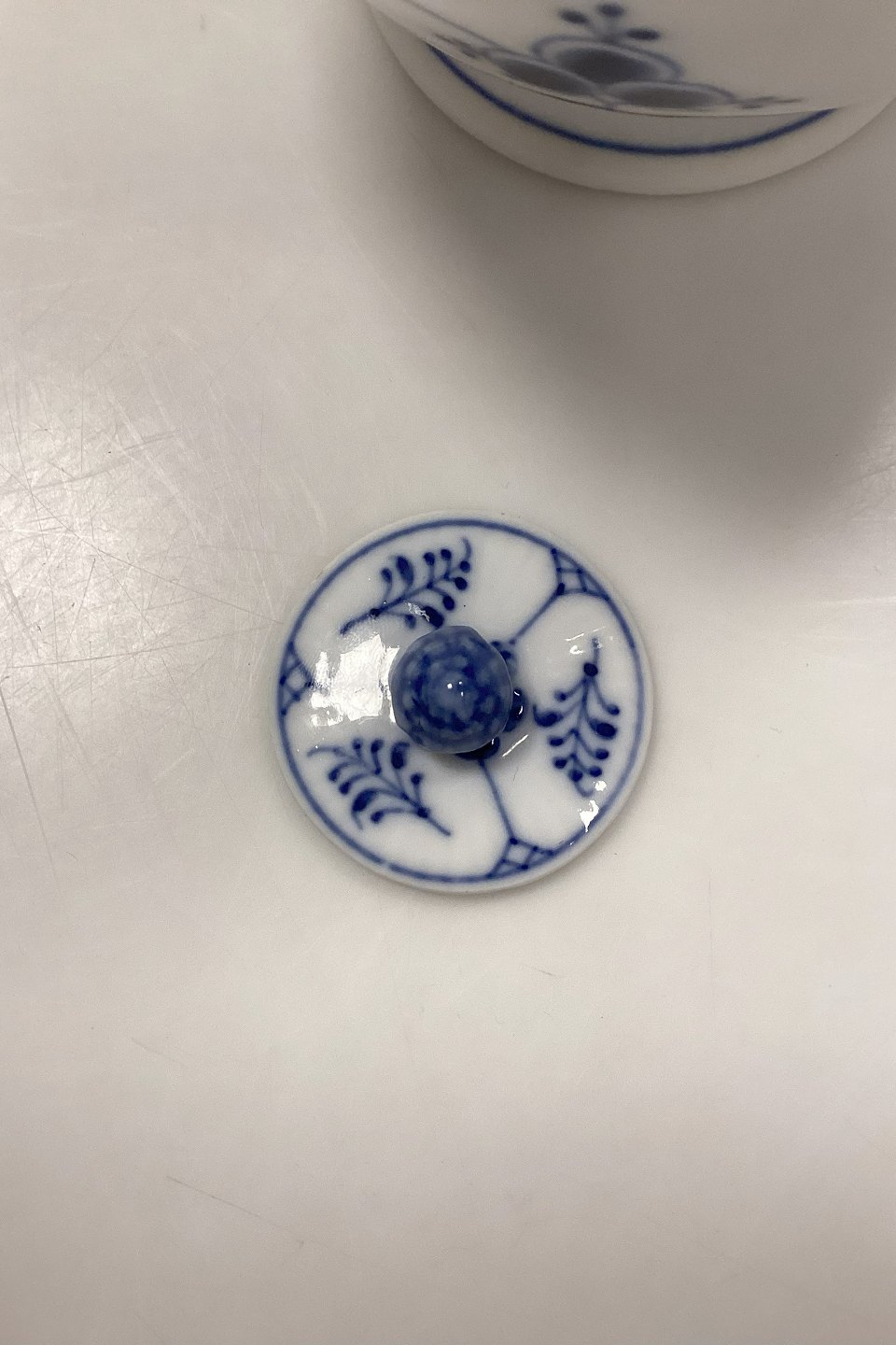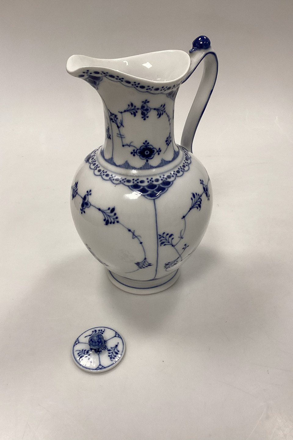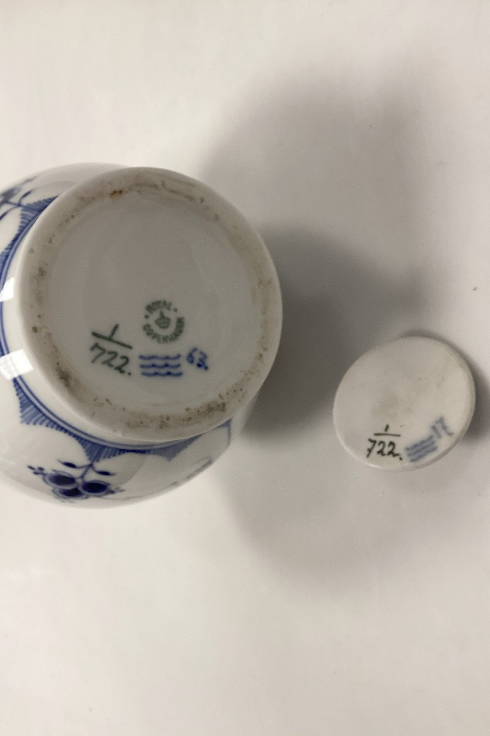 Royal Copenhagen Musselmalet Halvblonde Chokoladekande No. 722 Har et afslag ved tuden, se billeder.