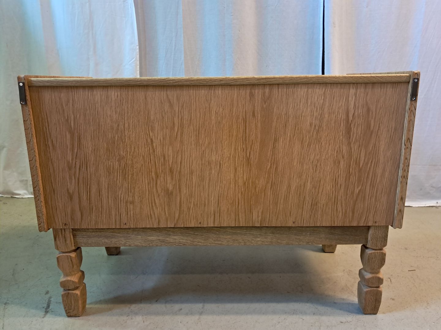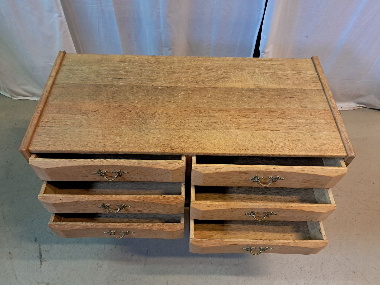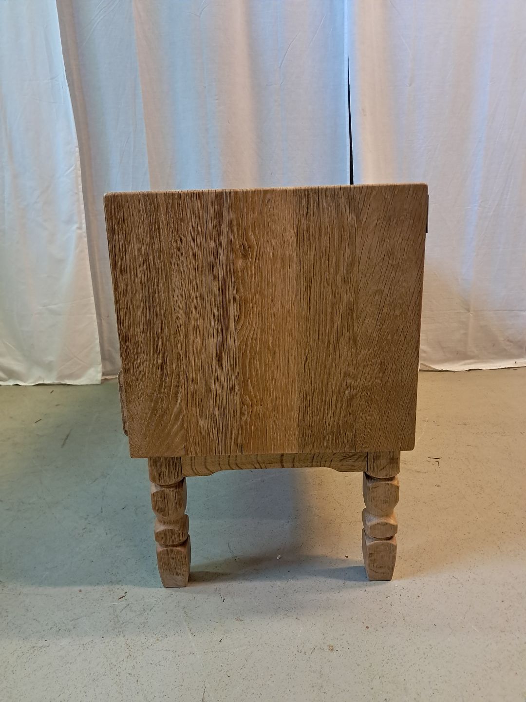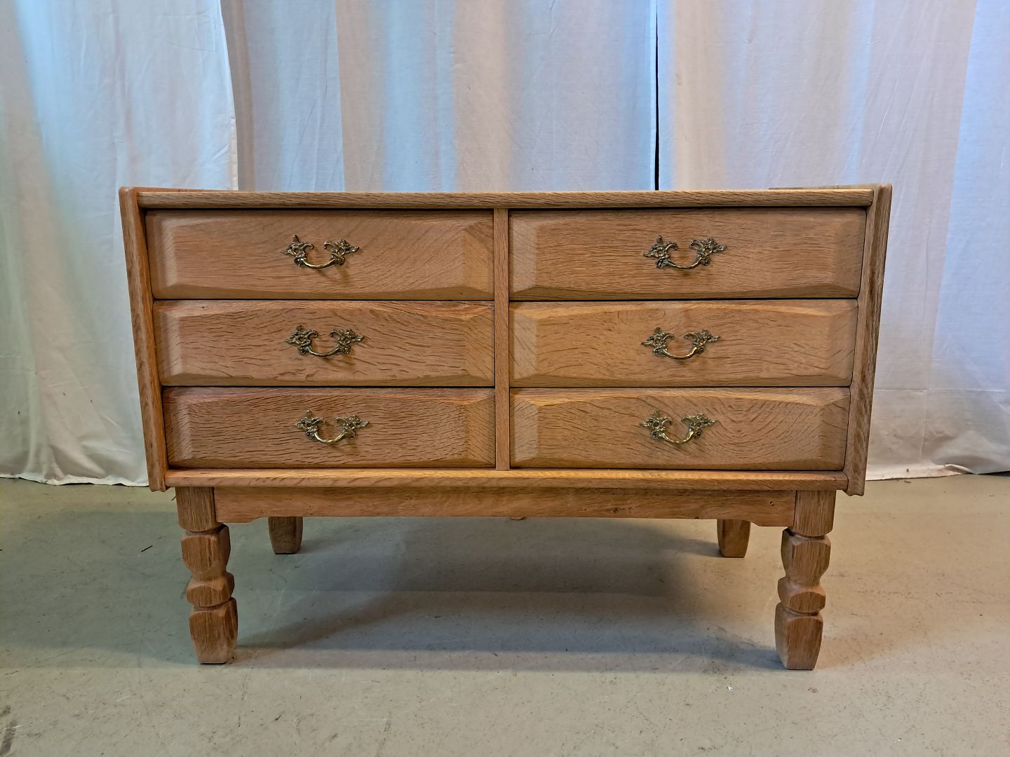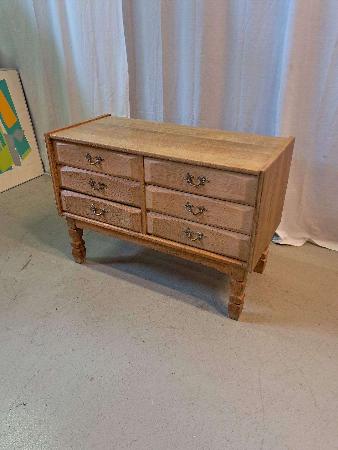 Kommode i massivt egetræ, fra 1980erne.Den har brugsspor.