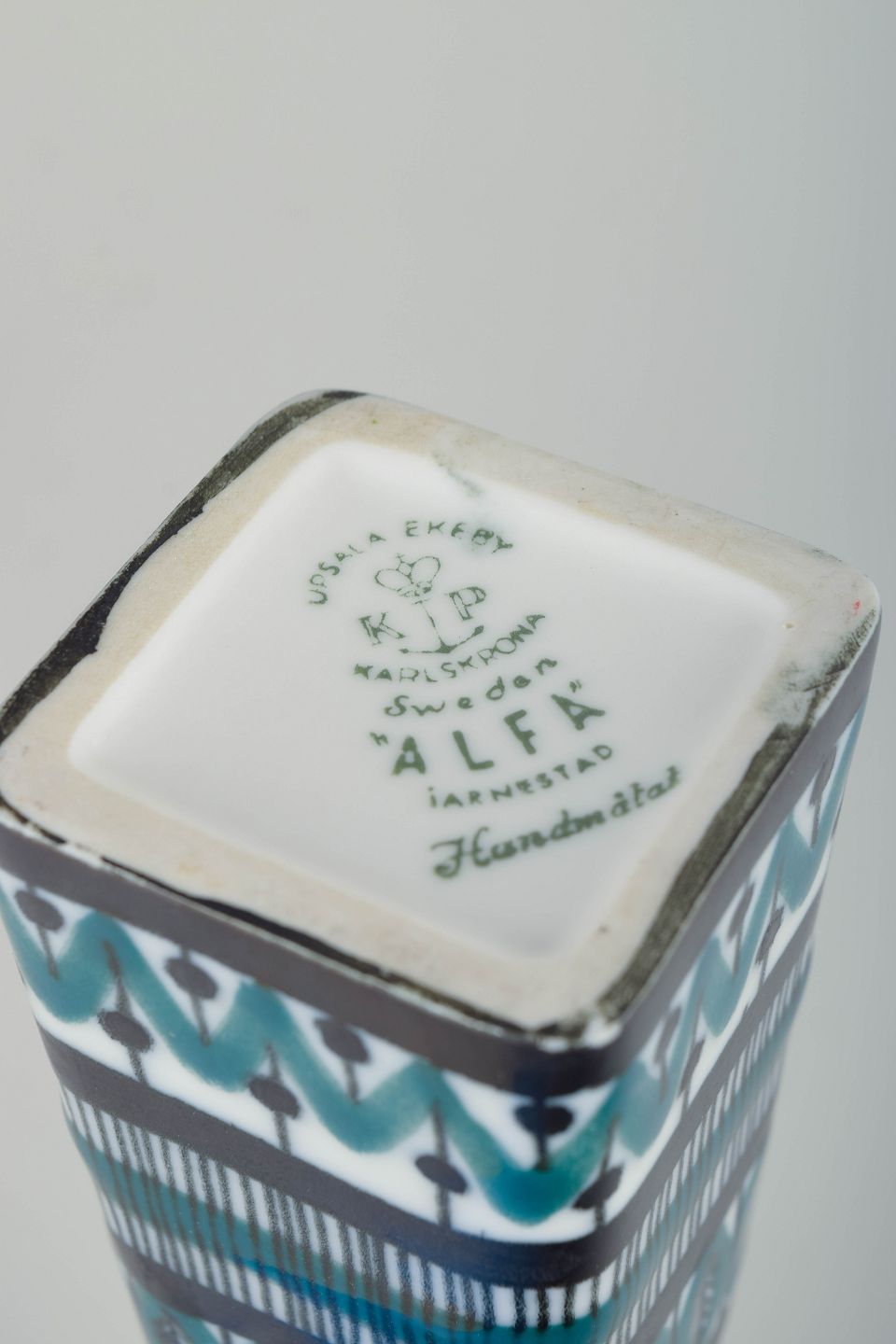 Upsala Ekeby og Karlskrona var blandt Sveriges mest markante producenter af dekorativ fajance i midten af det 20. århundrede. Kombinationen af håndmalede mønstre, klare farver og moderne former gjorde deres produkter ikoniske for perioden og højt værdsatte blandt samlere i dag.