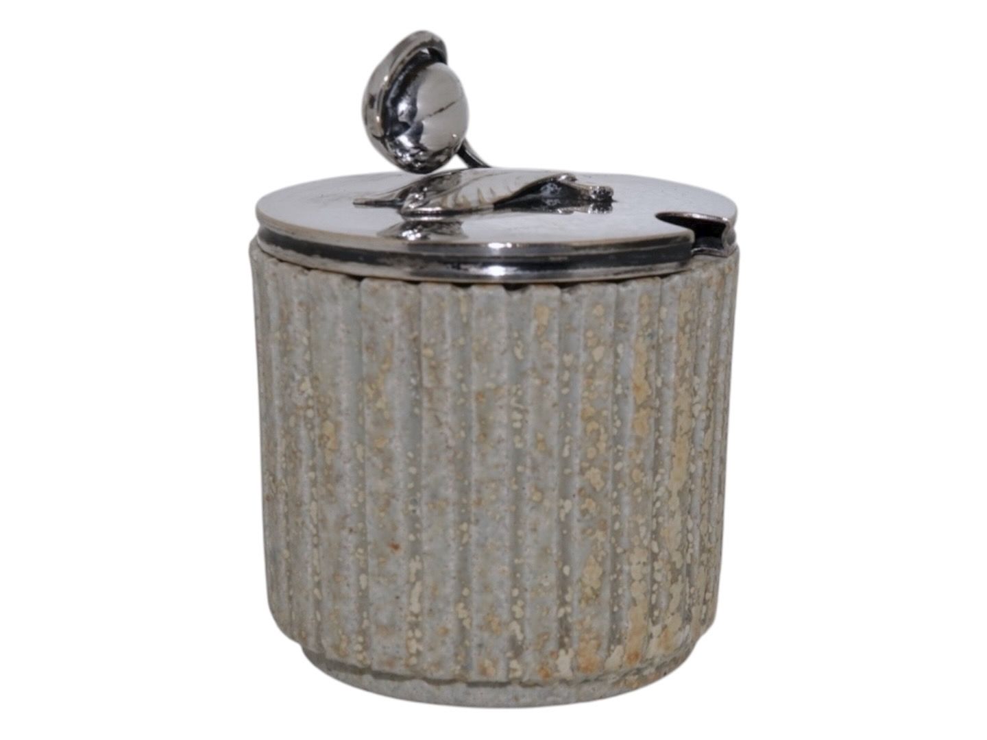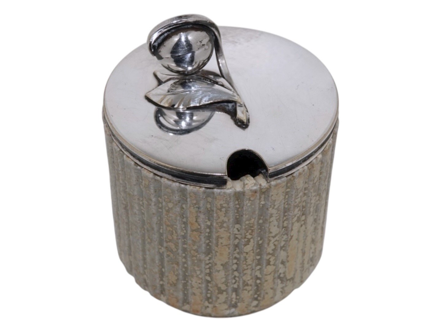 Arne Bang keramik, marmeladekrukke med låg i pletsølv.Designnummer 128.