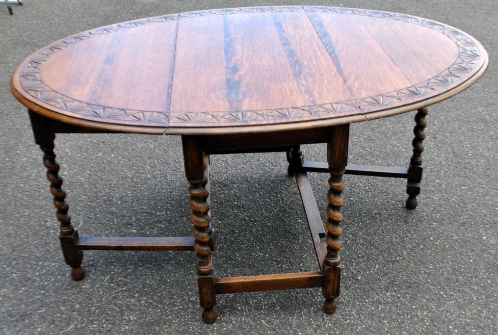 Englischer gateleg tisch aus Eiche, 19. Jahrhundert. Mit gedrechselten Beinen. Mit Dekoration auf der Oberseite. H.: 73 cm. B.: 105 cm. T.: 48 cm. Ausgezogen: 148 cm.Ausgezeichneter Zustand.