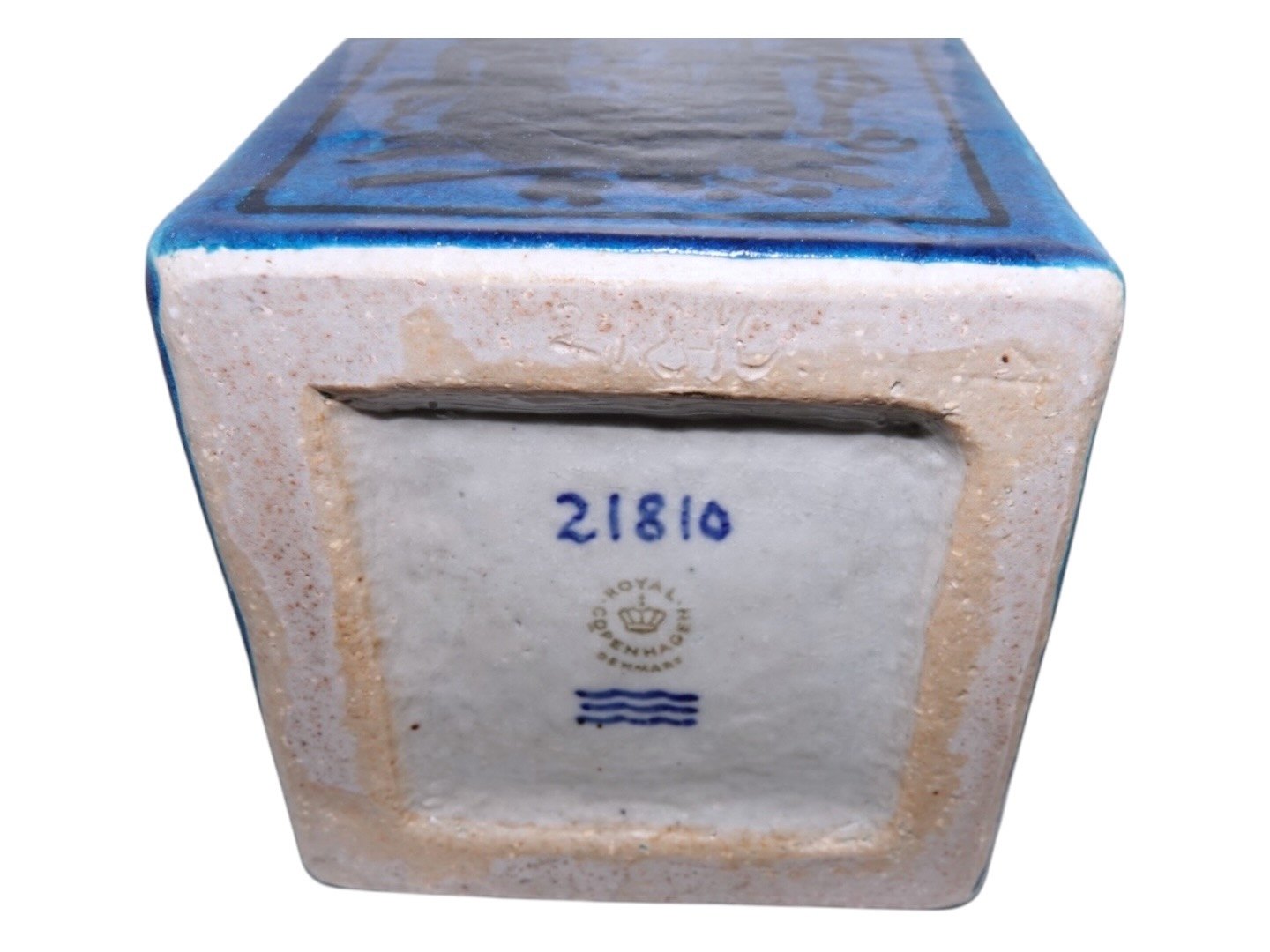 Royal Copenhagen blå vase dekoreret med damer designet af Johannes Hedegaard.Dekorationsnummer 21810.