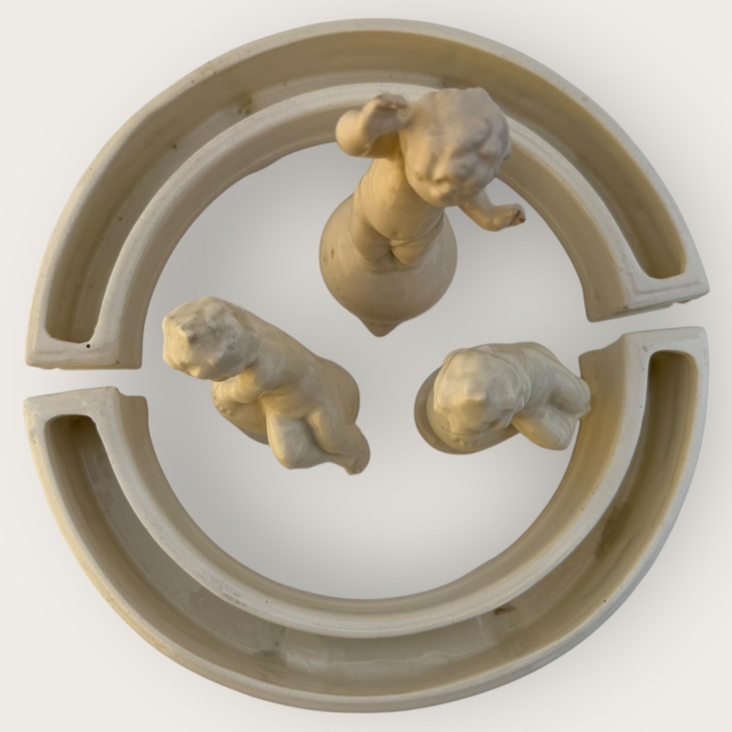 Tischdekoration, Fayence-Tischbild mit Figuren, cremeweiße Fayence, *Guter gebrauchter Zustand, mit einigen sehr kleinen Abplatzungen*Lager: 1