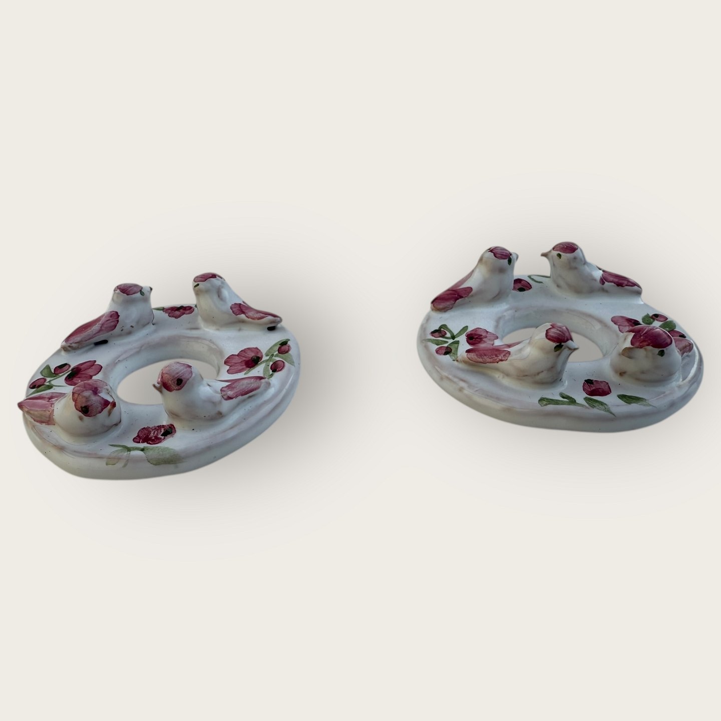 Torben Ceramics, ein Set Kerzenmanschetten mit roten Vögeln, Durchmesser 6 cm, guter ZustandLager: 1